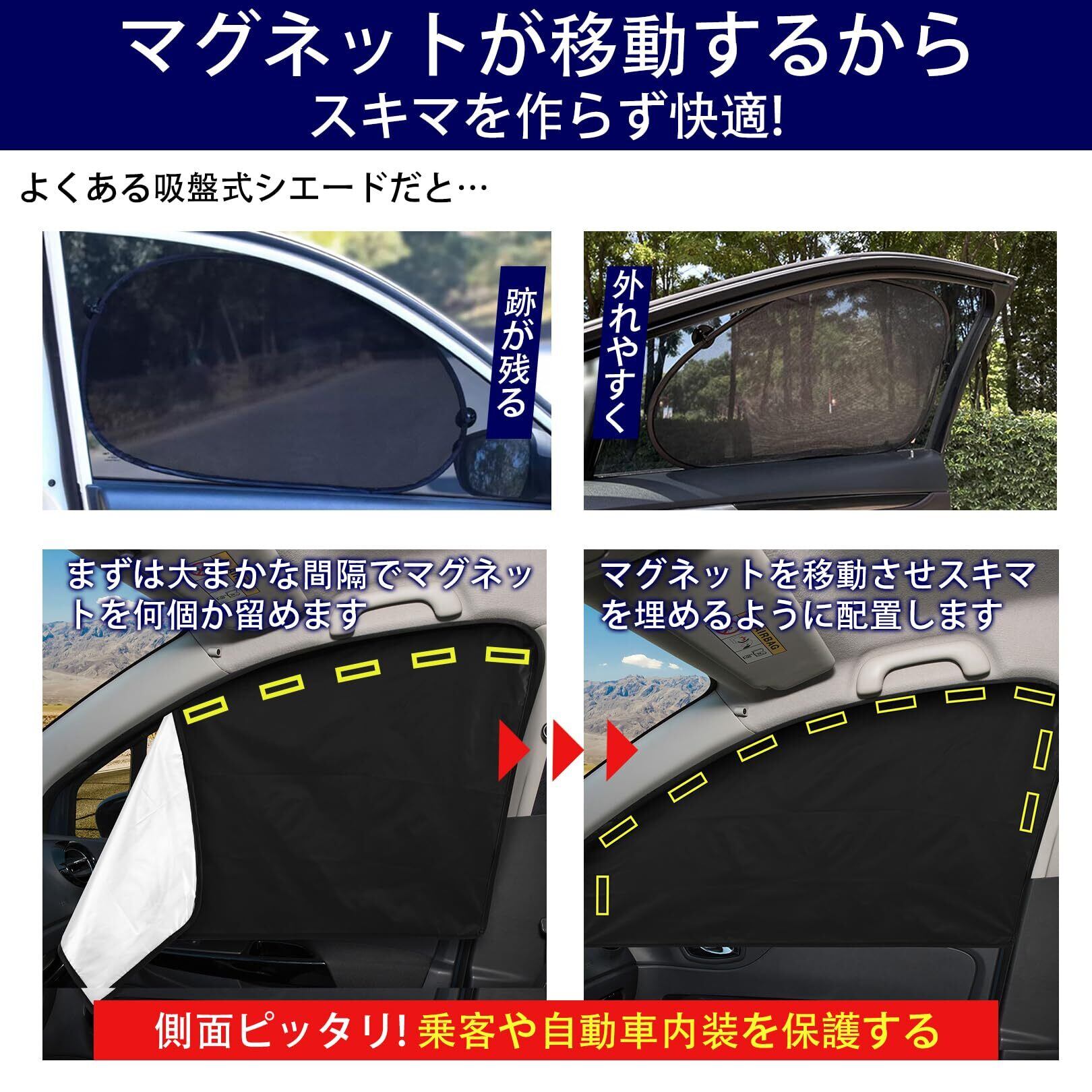 遮光サンシェード 前部サイドウインド 運転席 助手席 車窓日よけ カーシェード 車内温度下げ UVカット チタン銀材質 日焼け防止 遮光 断熱 磁石貼付 プライバシー保護 直射日光 紫外線対策 取付簡単 災害 プライバシー (ブラックチタン銀, 後ろの2つの窓)