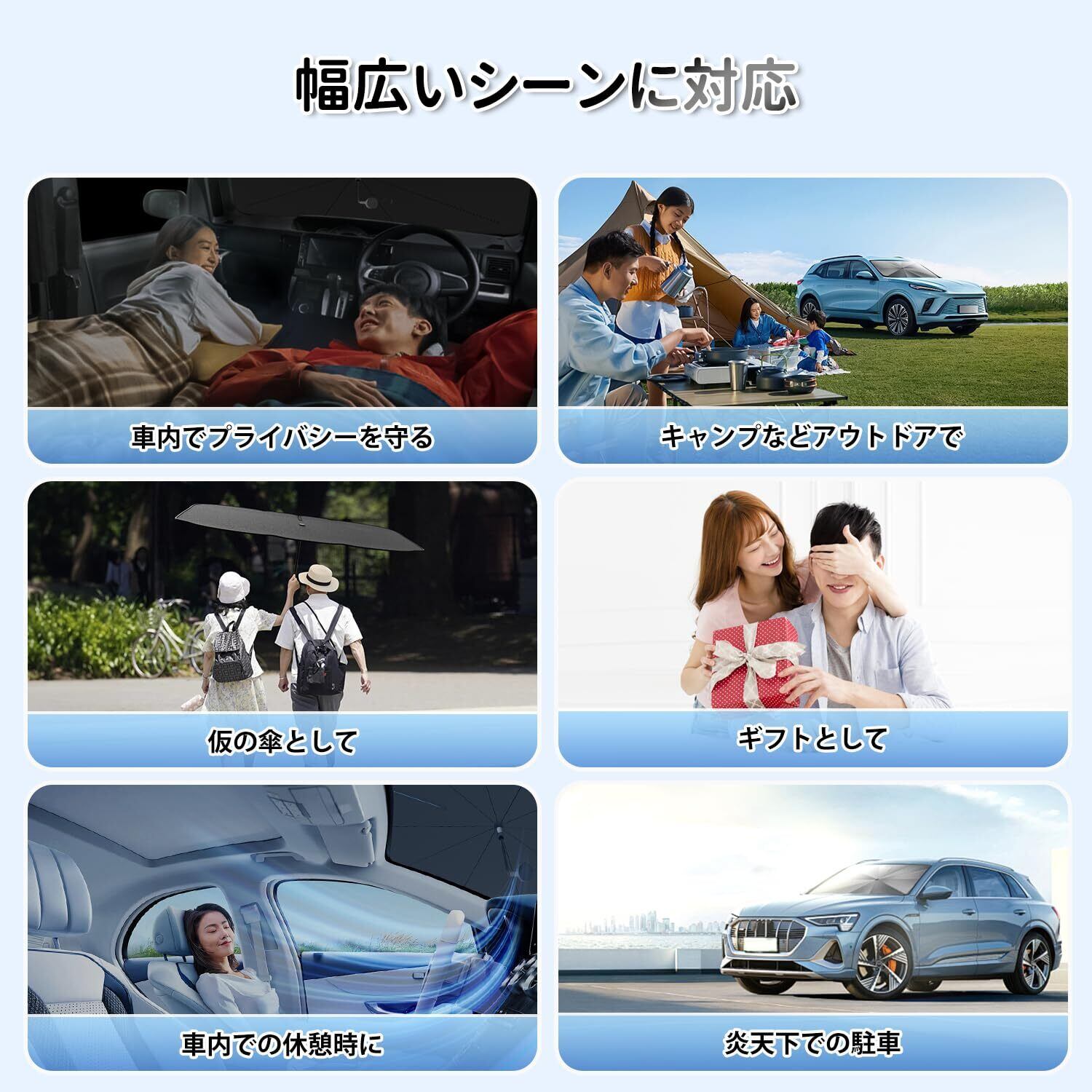 4.【収納便利・オールシーズン対応】 従来比厚さ+2cmだが、専用収納ケース付きでトランクでもスッキリ収納。軽量で女性でもラクラク操作!畳むと折りたたみ傘より若干大きめですが、コンパクトに収納できます!この傘型サンシェードは遮光断熱だけでなく、防水加工で、一時の傘として仮りでも可能!
