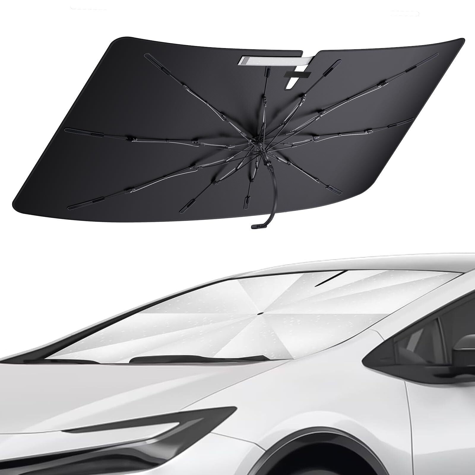 【灼熱地獄からの脱出!】「真夏の車内がサウナ状態...」もう我慢しない!プリウス60 用 傘 サンシェードが航空宇宙技術を転用した多層ナノ断熱材、灼熱の太陽光を反射・吸収・遮断の三重防御。チタンシルバーコーティングで紫外線カット率100%(UPF50+)を実現!駐車中の車内温度上昇を最大30℃抑制し、エアコンの効率もアップ。フロントガラスを守り、暑さ対策も万全!