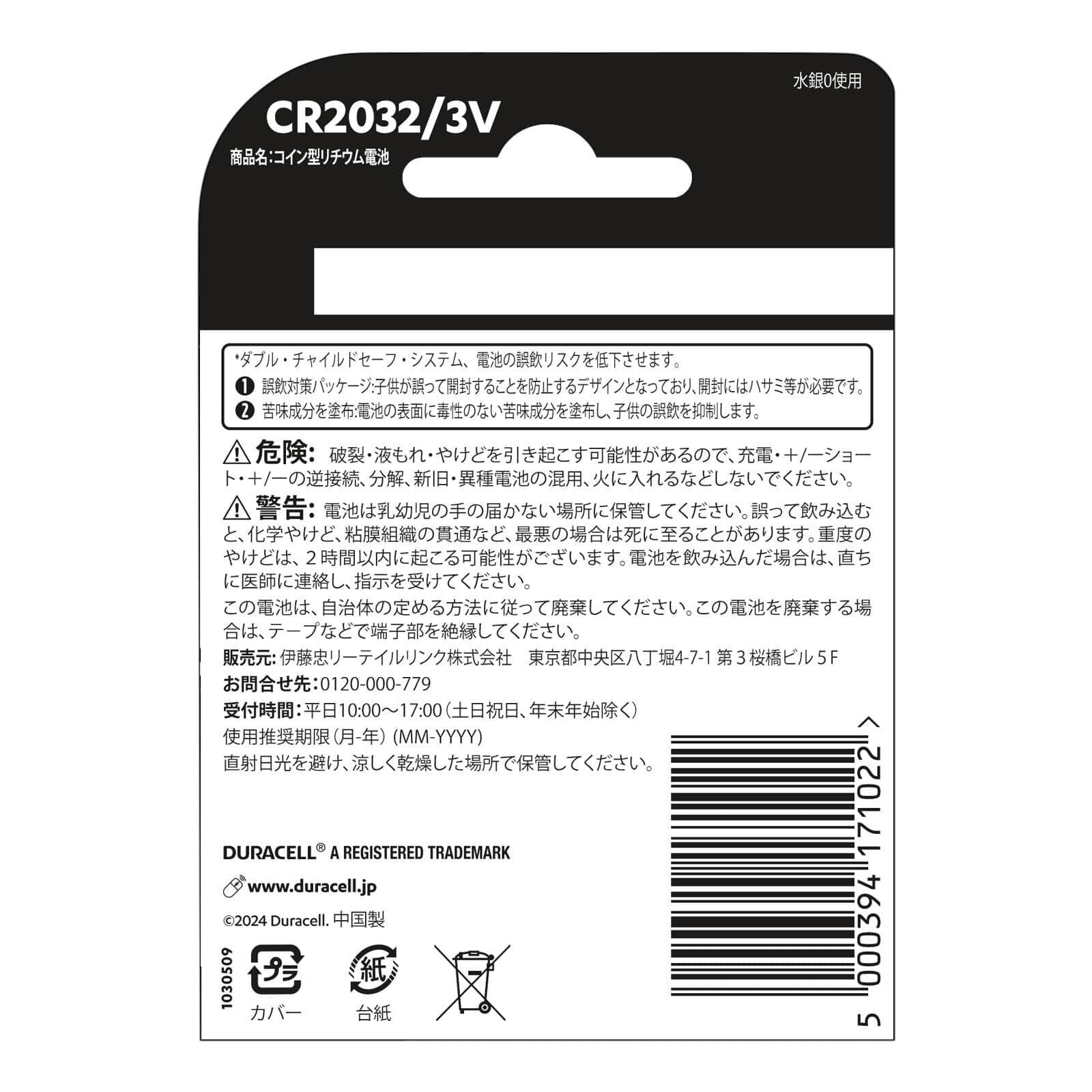 【デュラセル】CR2032 リチウムコイン電池 4個入り 保存期間10年 コイン/ボタン/特殊 誤飲防止 苦み成分塗布 チャイルドセーフティ Airtag キーレス 腕時計 防災 備蓄