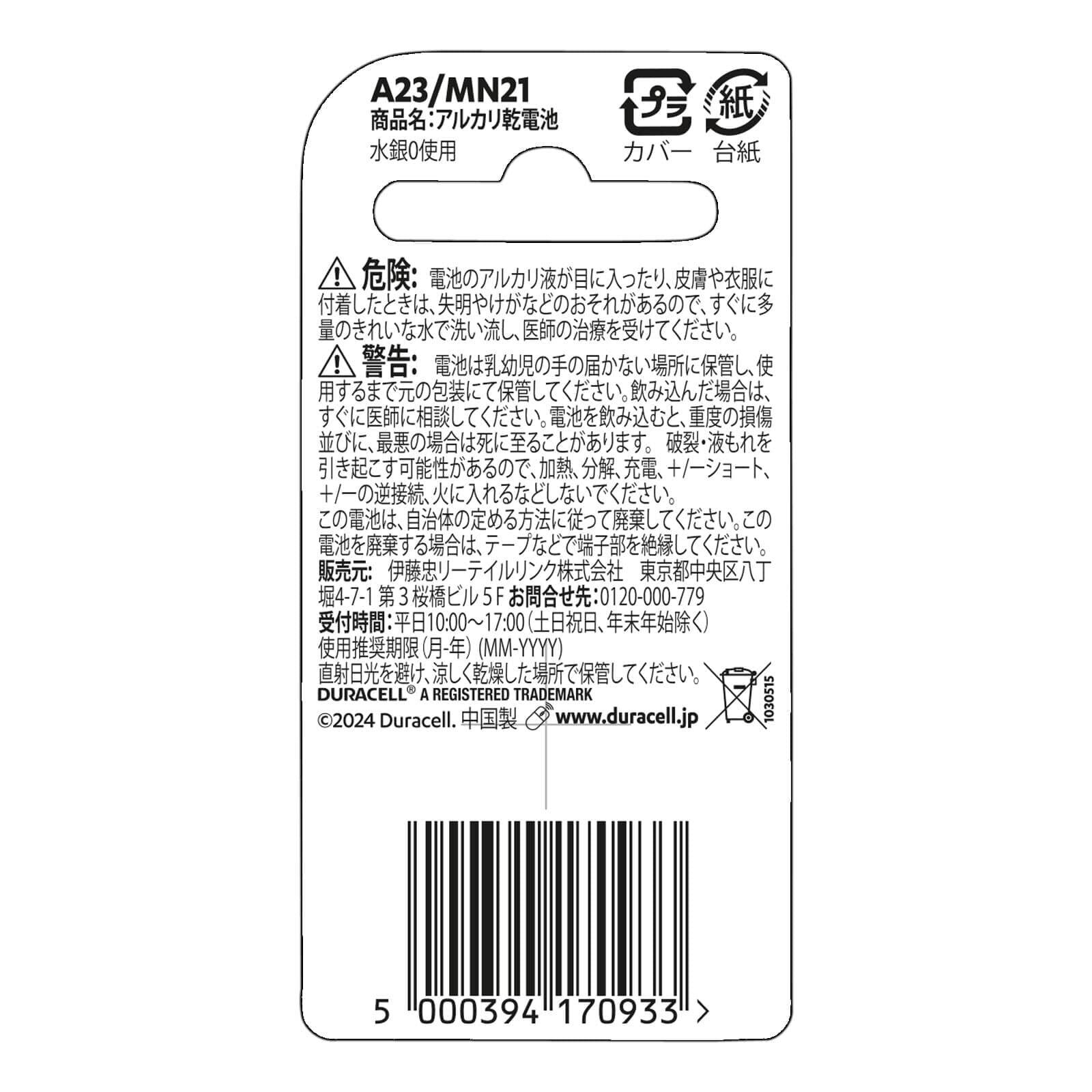 【デュラセル】23A MN21 LRV08 アルカリ乾電池 2本入り 保存期間5年 特殊 防犯