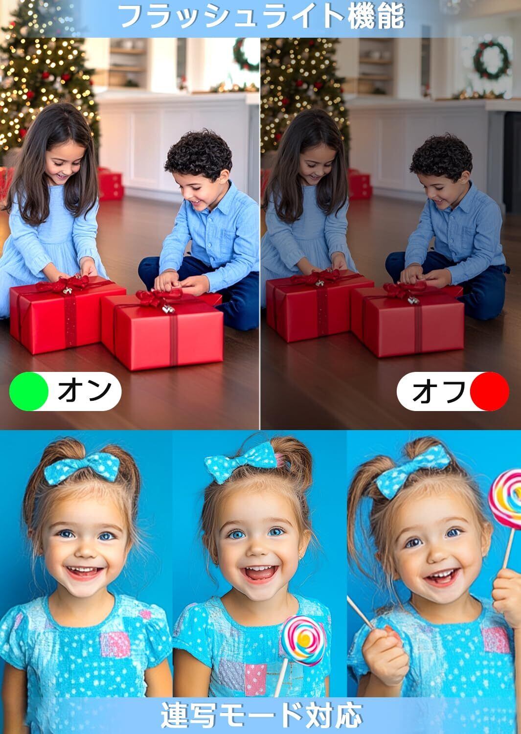 【4K 64MP & デュアルスクリーンデザイン】デュアルスクリーン搭載の4K 64MPデジタルカメラで、すべての瞬間を美しく残せます!本体を回転させることなく、ワンタッチでセルフィーモードに切り替え可能。レトロなフィルム風グレインエフェクトで、映画のような雰囲気のある写真が撮影できます。最適な撮影距離は約2.5m(8ft)で、明るい環境での撮影を推奨します。