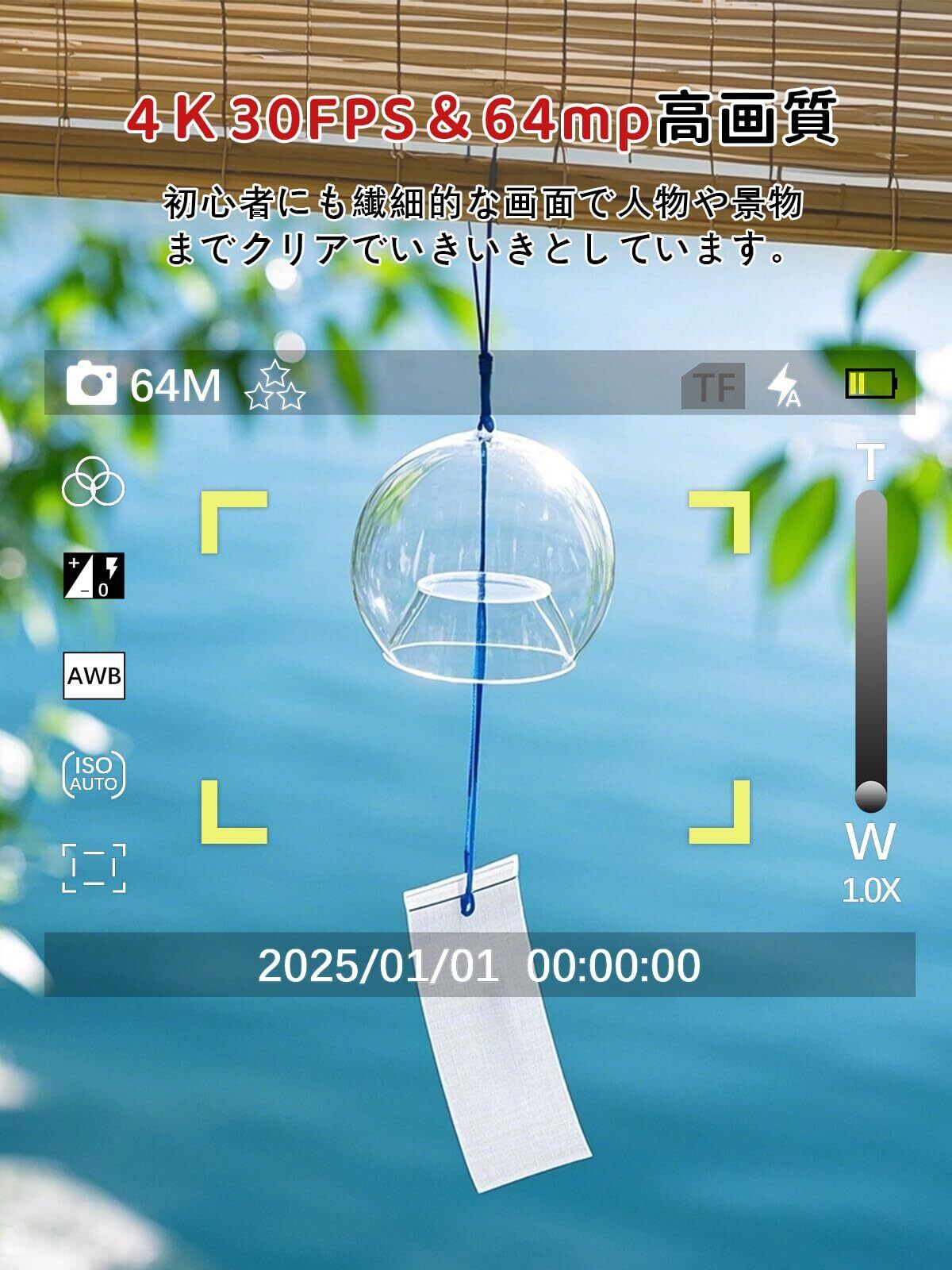 【コンパクトで多機能】18倍デジタルズームで遠近のディテールを忠実に再現。暗所撮影用補光ライトを内蔵し、薄暗い環境でも自然な色味の高画質撮影が可能。ポケットサイズのスタイリッシュデザインで、インスピレーションが閃いた瞬間を逃しません。多彩なフィルター・連写機能・タイムラプス撮影など、クリエイティブ機能が満載。様々なスタイルに挑戦し、大切な瞬間を切り取りましょう。