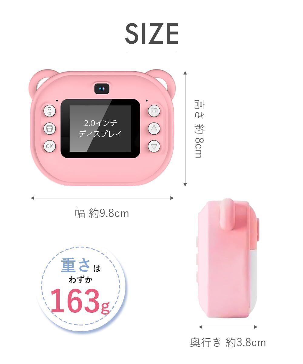 機能:写真・動画・プリント・ゲーム、電池容量:1300mAh、充電時間:約2.5時間