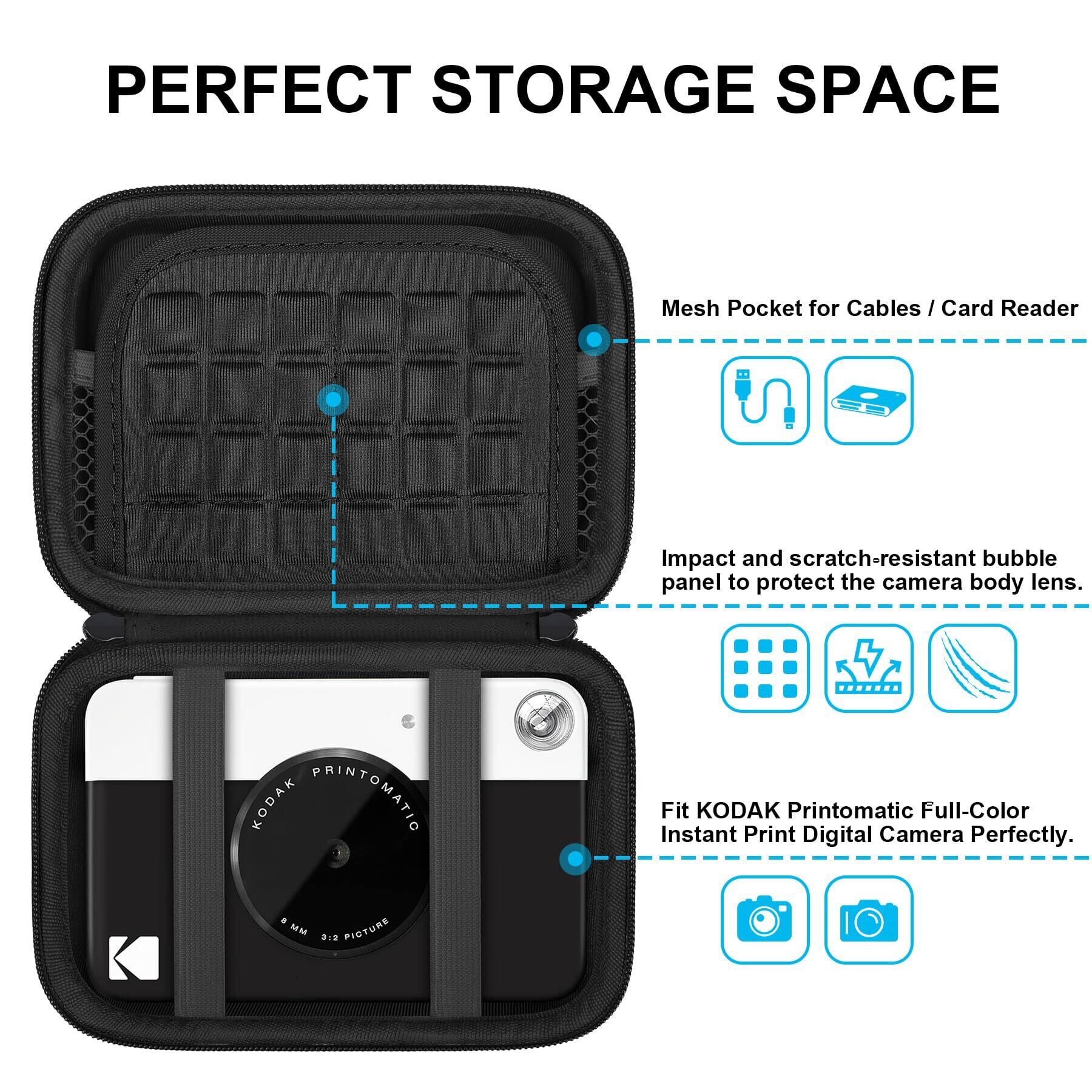 Lacdo Kodakのカメラキャリングケースプリントフルカラーインスタントプリントデジタルカメラ、ポータブルインスタントフォトプリンターハードトラベルストレージバッグ、メッシュバッグはバッテリー、USBケーブル、SDカード、ブラック | kki