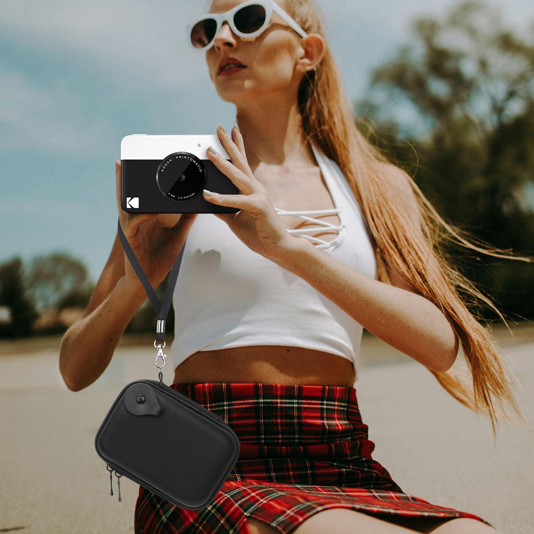 Lacdo Kodakのカメラキャリングケースプリントフルカラーインスタントプリントデジタルカメラ、ポータブルインスタントフォトプリンターハードトラベルストレージバッグ、メッシュバッグはバッテリー、USBケーブル、SDカード、ブラック