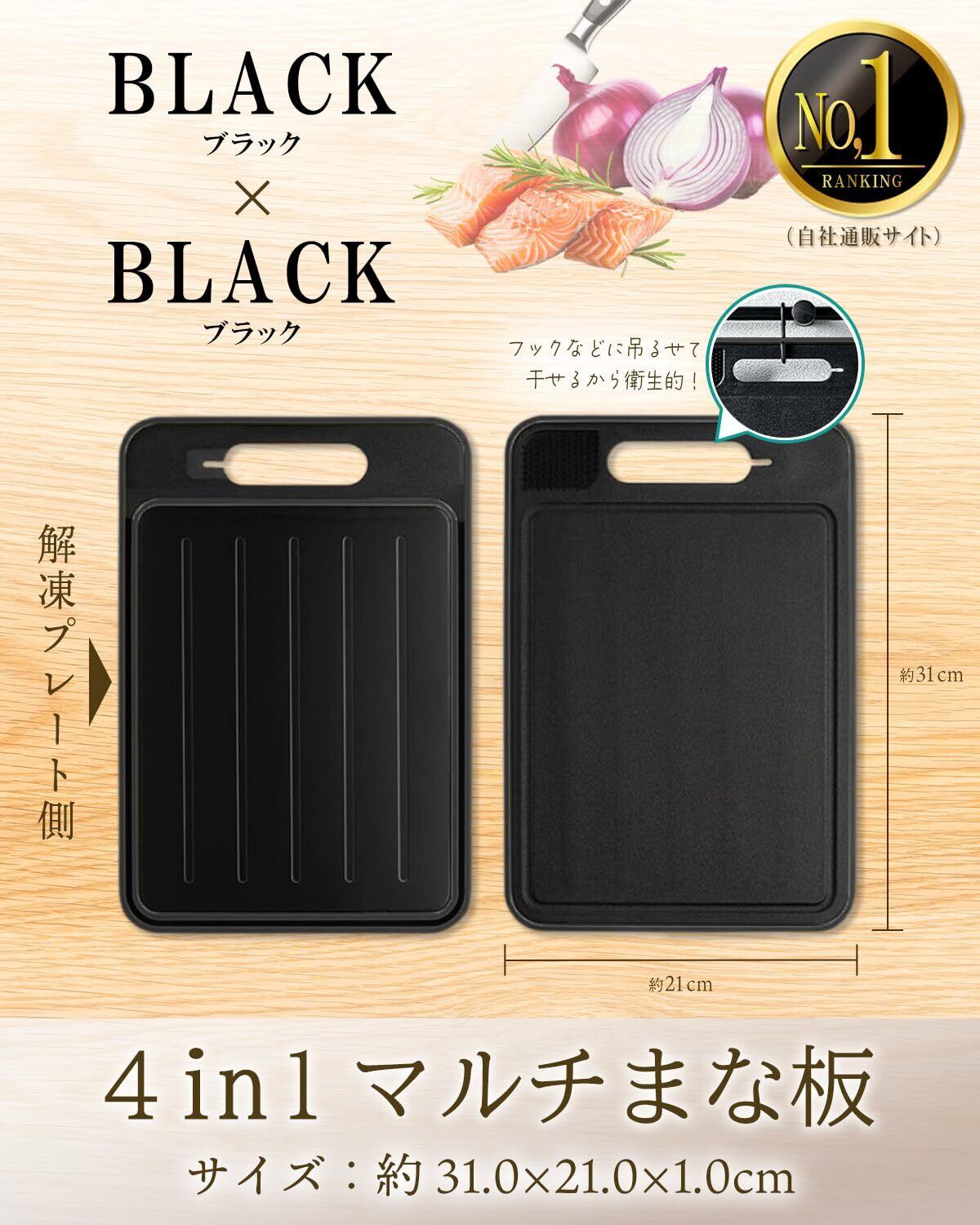 【Cookpad plus掲載品】まな板 解凍プレート すりおろし器 シャープナー 滑り止め (ブラック, 31×21cm)