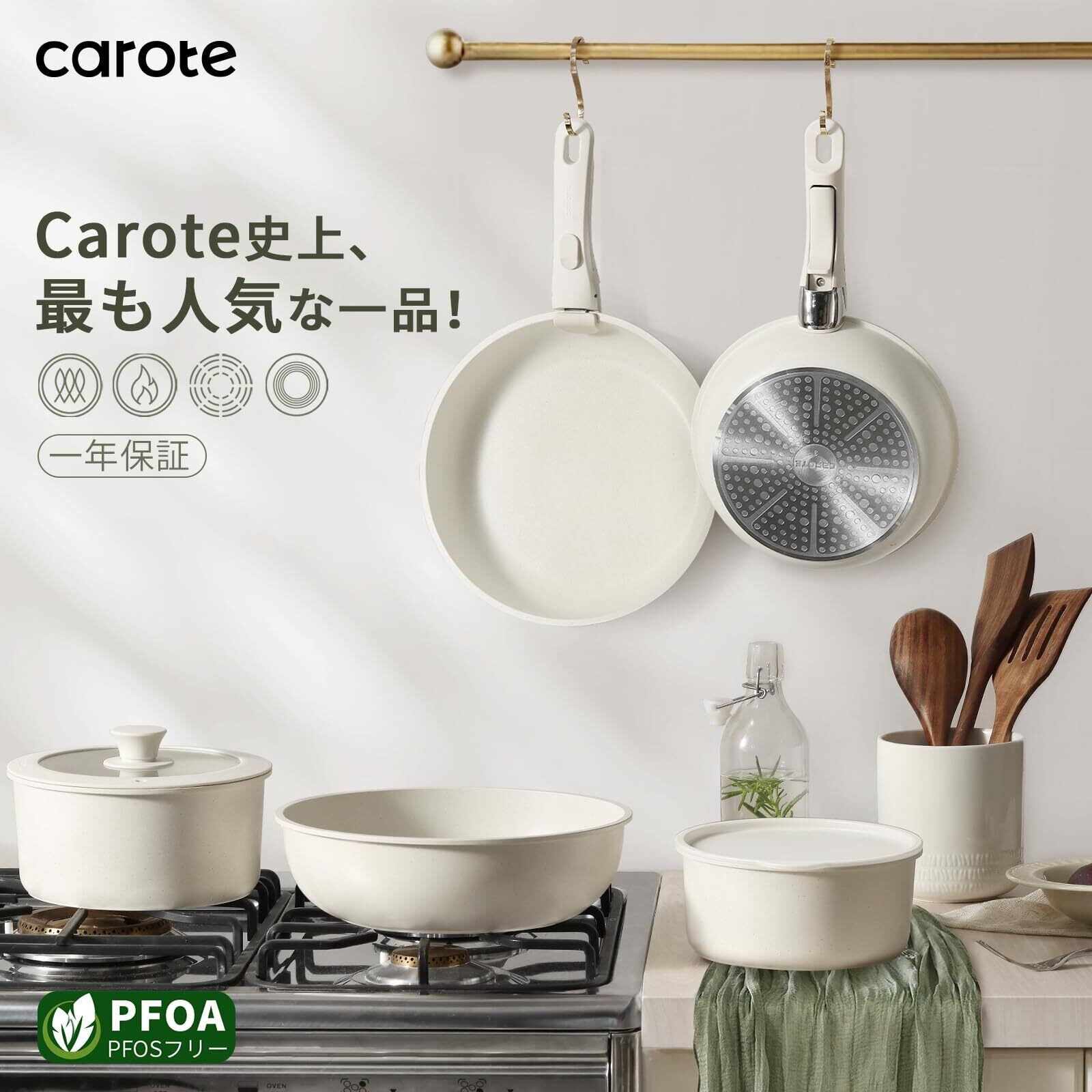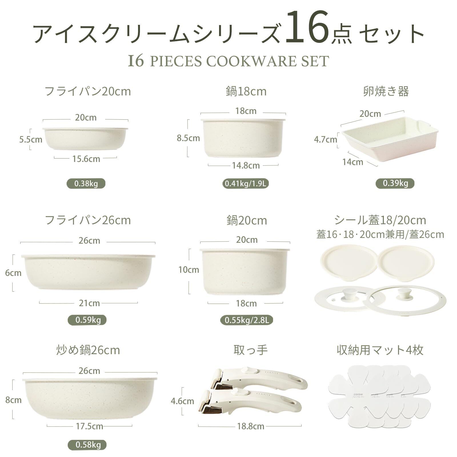 CAROTE カローテ フライパン セット 16点 IH対応 ガス火対応 PFOAなどの有害物質不使用 5層構造 軽量 取っ手のとれる マーブルコート くっつきにくい 鍋セット 卵焼き器 洗いやすい 新生活応援 オーブン対応 ベージュ 一年 「アイスクリーム」シリーズ