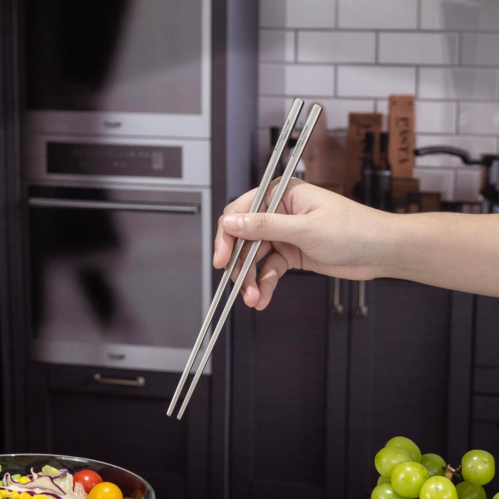 Boundless Voyage チタン箸 軽量 頑丈 角箸 菜箸 マイ箸 1膳 軽量 直火 お弁当 出張 携帯箸 調理器具 アウトドア キャンプ 登山 BBQ 箸 食器 キャンプ用品 収納袋付き (23cm 角箸)Ti1183T | kki