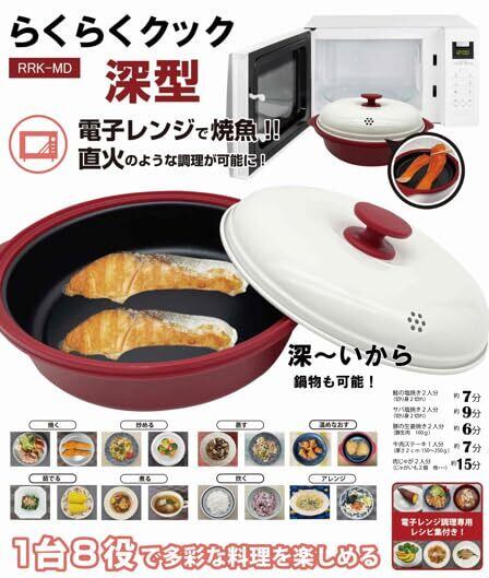 電子レンジ調理器具 Modéré らくらくクック 深型 RRK-MD 食洗機対応 コンパクト 焼く 炒める 茹でる 煮る 蒸す 炊く 温野菜 野菜炒め 焼き餃子 焼き魚 焦げ目