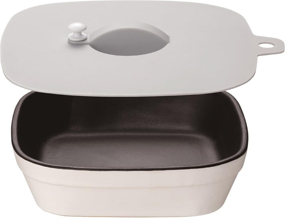 イシガキ 電子レンジ 調理皿 ホワイト 蓋をした場合:幅20.9×奥行18.7×高さ6cm 陶器のみ:幅18×奥行18×高さ4.9cm 陶器 シリコン蓋 セット スクエア M 浅型 食洗器 対応 レシピ 付き | kki