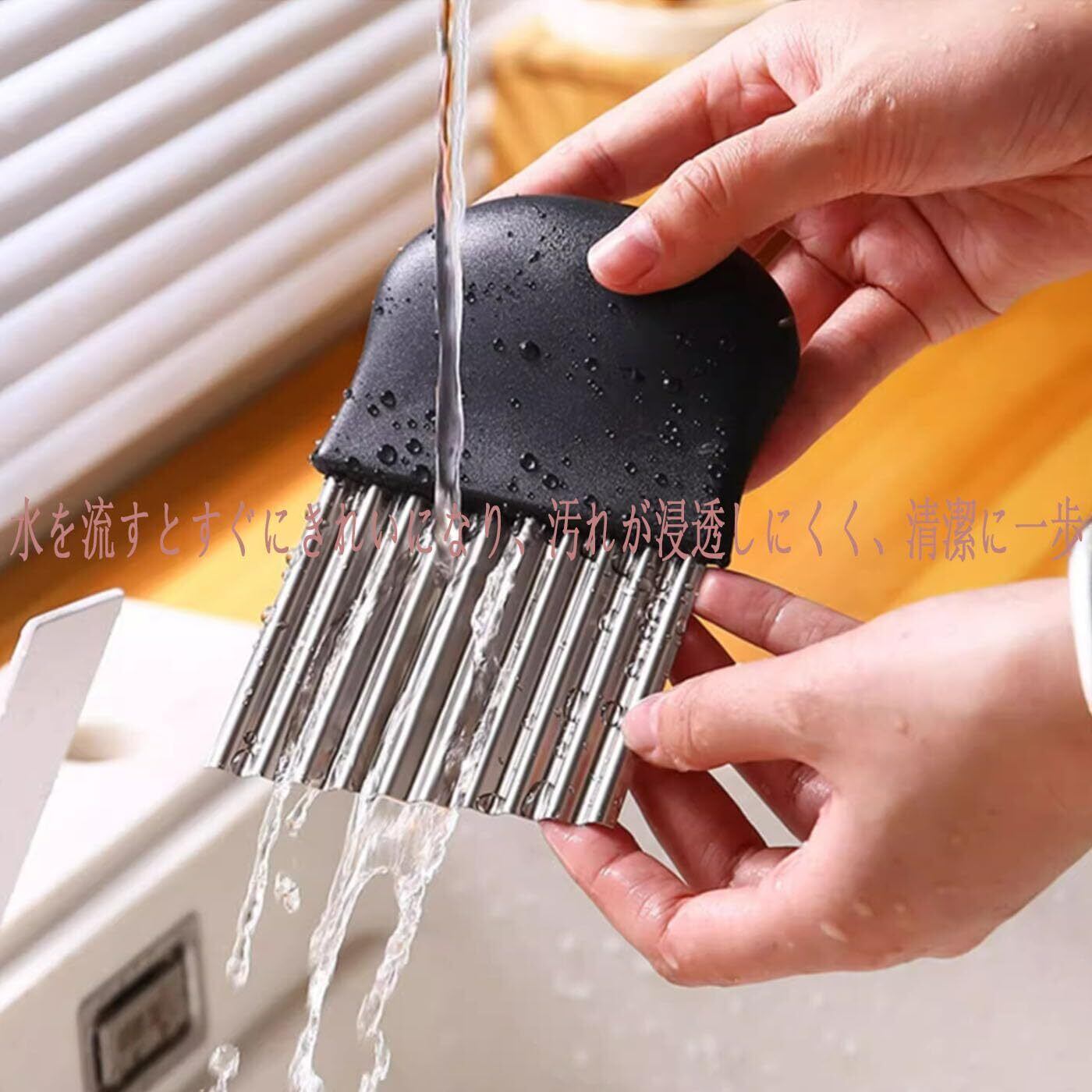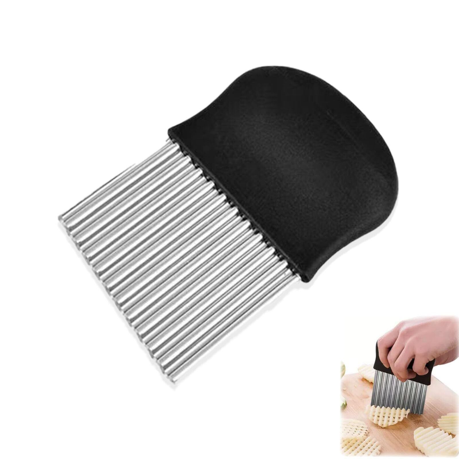 Mirhua 多機能 家庭用ステンレス製 波型 じゃが ナイフ オニオン クリンクルカッター ニンジン 家庭用 調理器具 刃が鋭い (ブラック)
