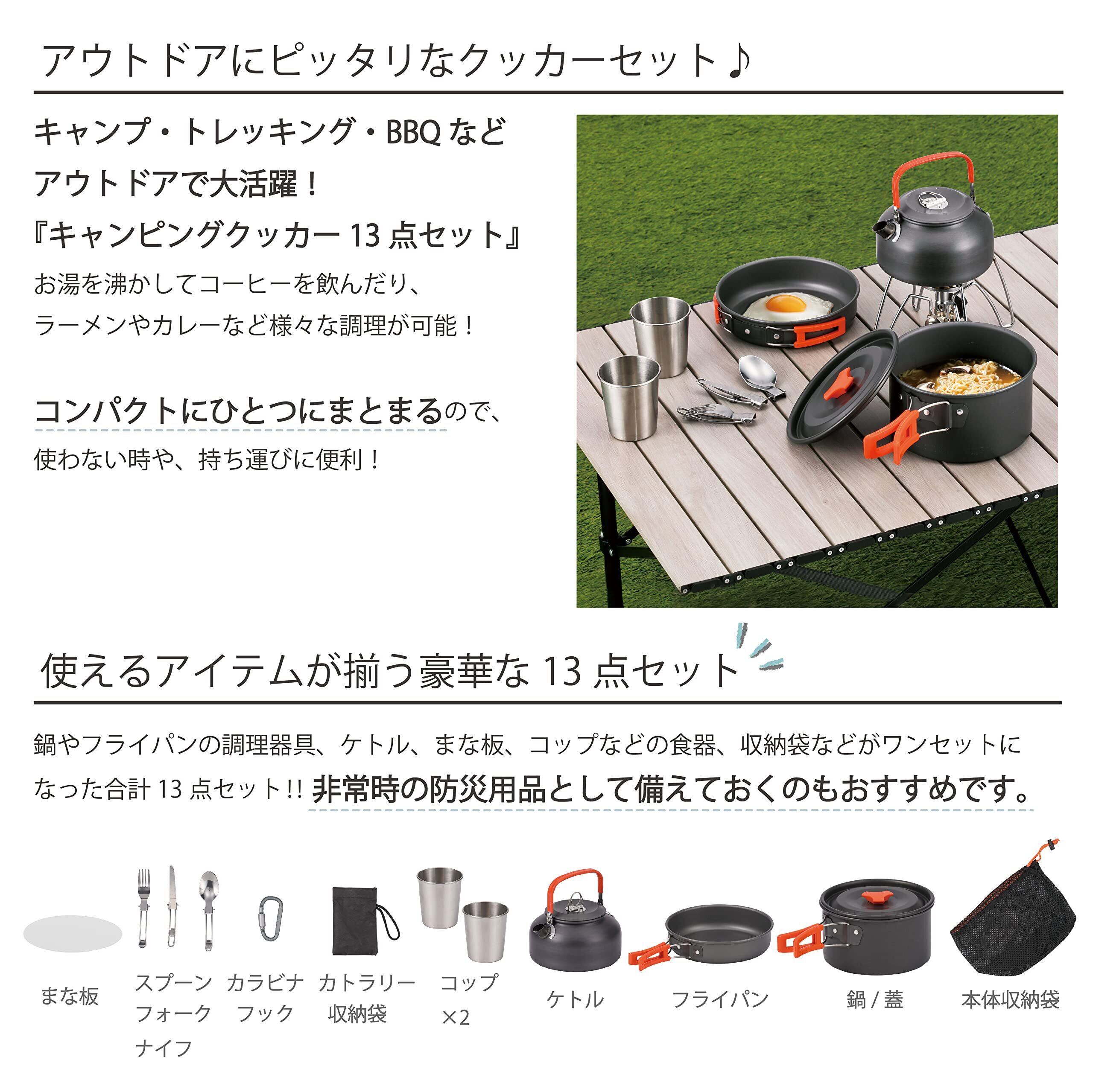 アウトドアにピッタリのキャンピングクッカー13点セットです。