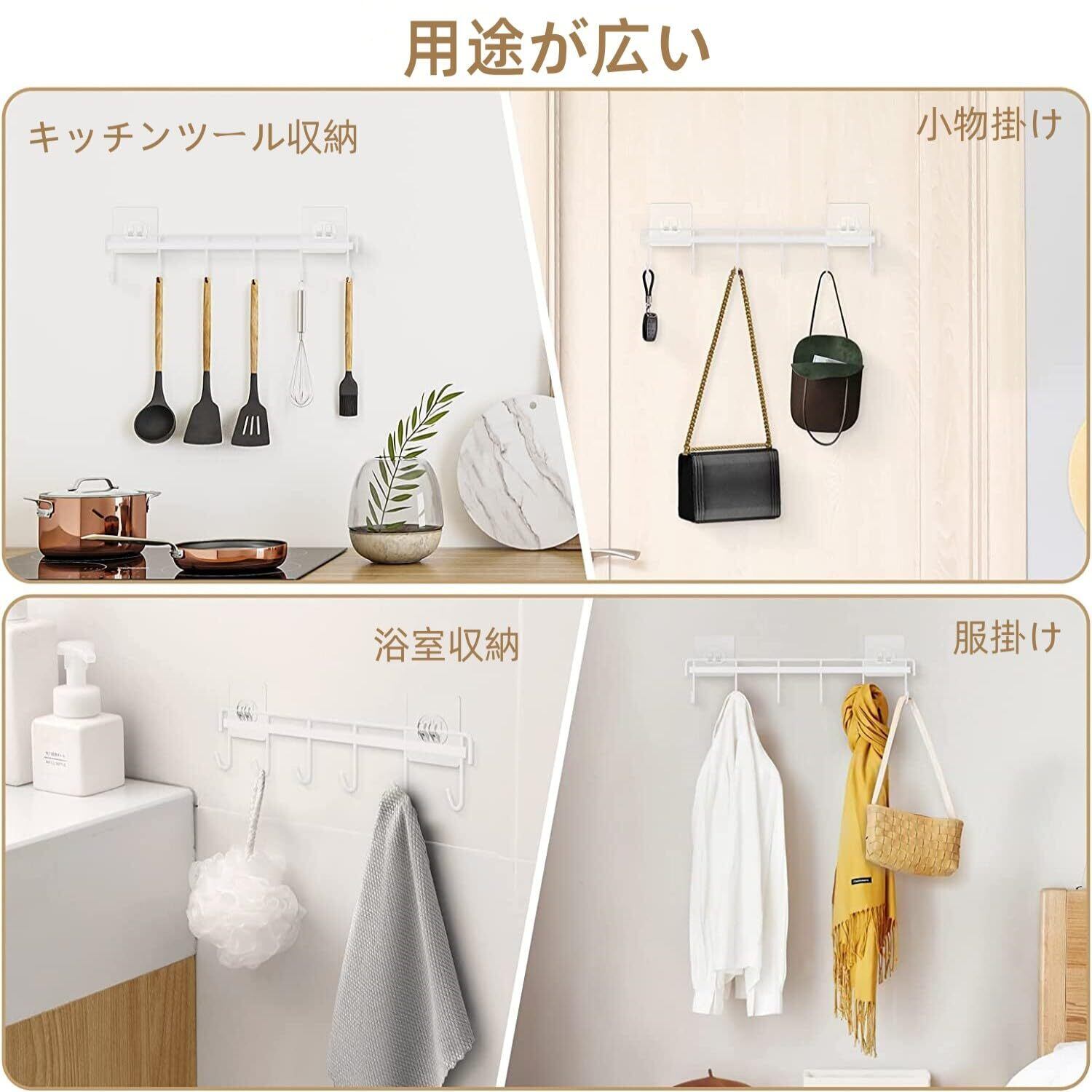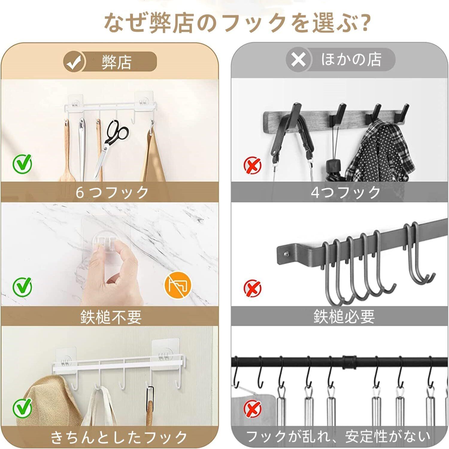 DOIOWN キッチンツールフック ウォールフック フック 壁 傷つけない キッチンツール 調理器具 キッチン収納 壁掛けフック 強力粘着固定 穴あけ不要 ステンレス 6個フック付き 防水 多機能収納フック 台所ラック 幅32cm 2個入り(4個テープ) | kki