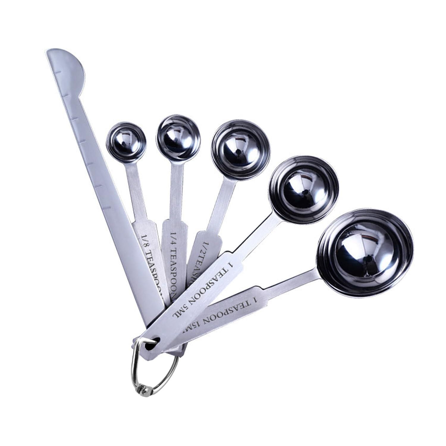 Derpilo計量スプーン 6本組 小麦粉計り目盛りスプーン 大さじ小さじ 薄型ヘラ付 ステンレス鋼製調理スプーン 調味料 計量 スプーン 調理器具 洗濯便利