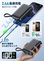 モバイルバッテリー 大容量【50000mAh大容量·2025年最強進化·2つのケーブル内蔵】モバイルバッテリー 軽量 小型 急速充電 4台同時に充電 最大出力2.4A Type-c/Lightningケーブル内蔵一体型 LED残量表示 PSE技術認証済 安全回路保護 Type-C入力/出力ポート 携帯充電器 スマホ充電器 コンパクト&軽量 旅行/出張/アウトドア/停電/防災緊急用