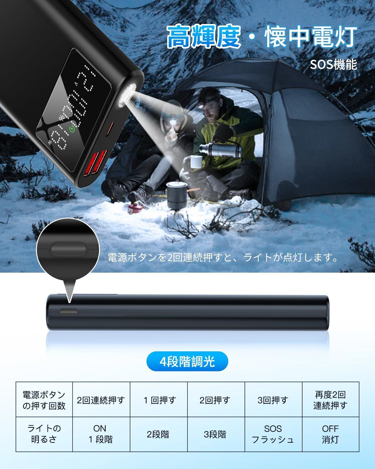 電熱ベスト バッテリー 大容量 40000mAh ヒーターベスト 専用電池 USB給電 3A安定出力 モバイルバッテリー 急速充電 PD22.5W対応 タイプc入出力兼用 3台同時充電 電熱ベスト用モバイルバッテリー LEDライト付き PSE認証済 3in1 LCD残量表示 電熱ウェア/加熱ベスト/電熱パンツ各種対応 iPhone/Android/iPad等に適用 防災グッズ(ブラック)