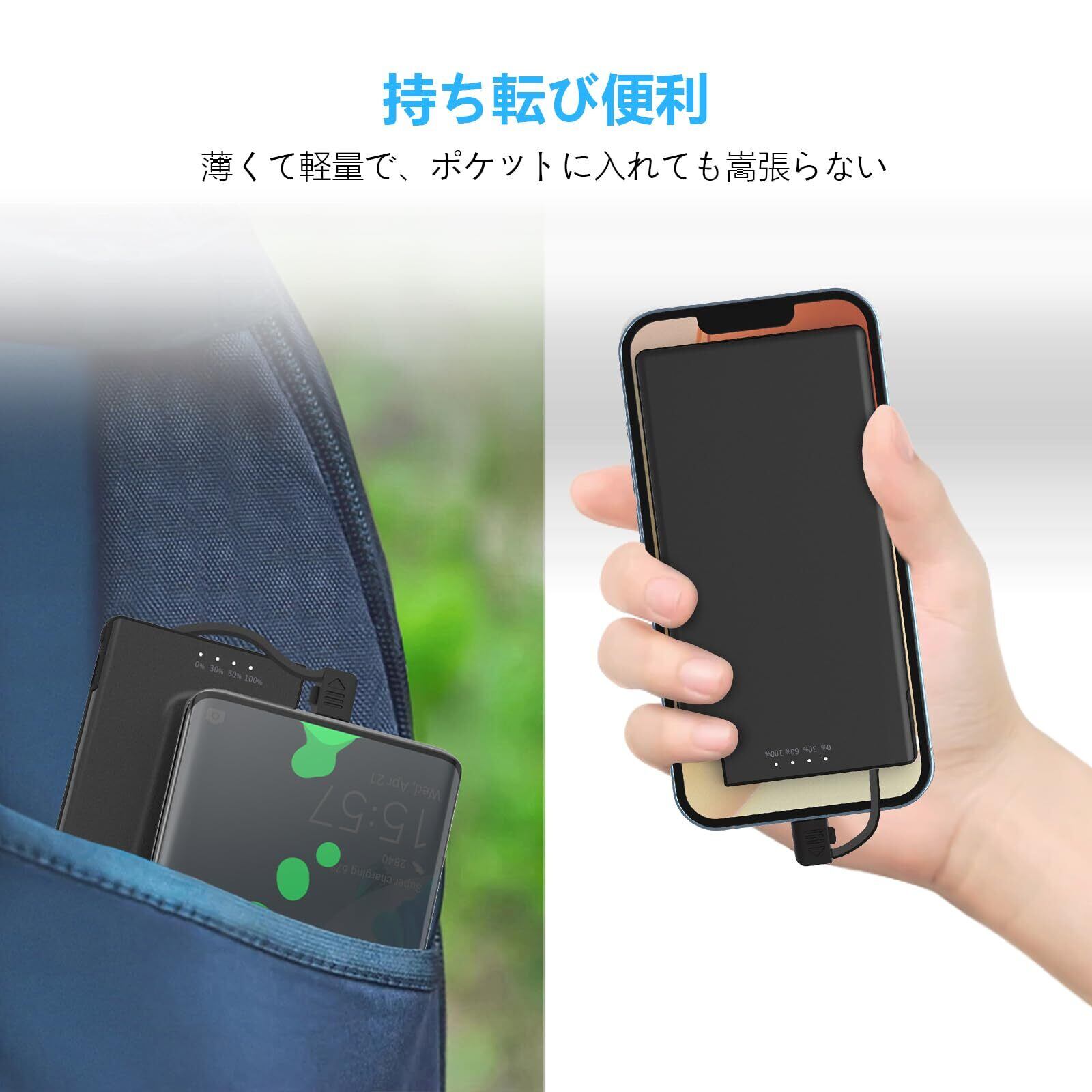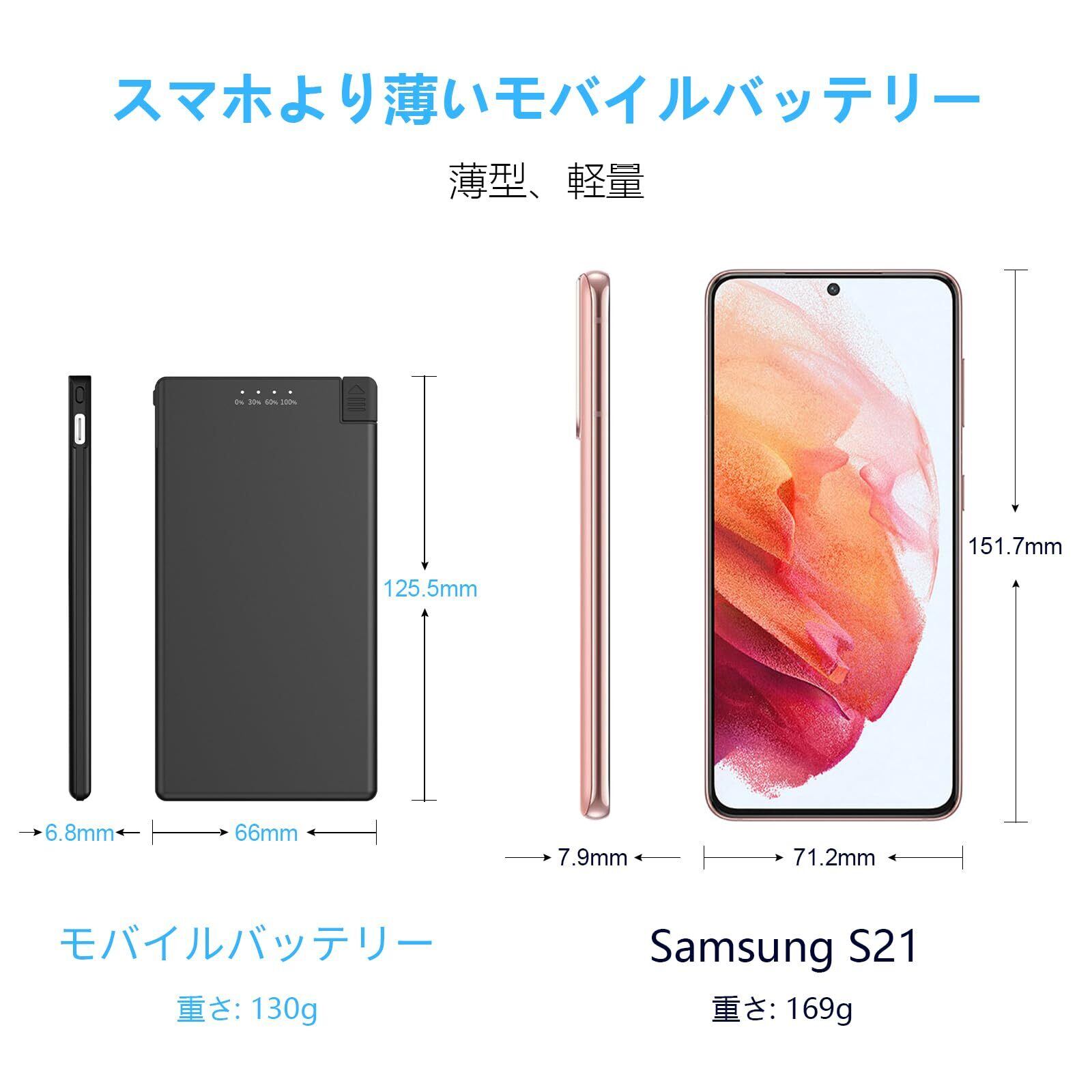 薄型・スリム&軽量なモバイルバッテリー:5000mAh、わずか6.8mmの薄さのモバイルバッテリーは財布やポケットに入れて持ち転びやすいです。外出先でも動画視聴やゲーム・アプリを楽しみたい方には欠かせないアイテムです。