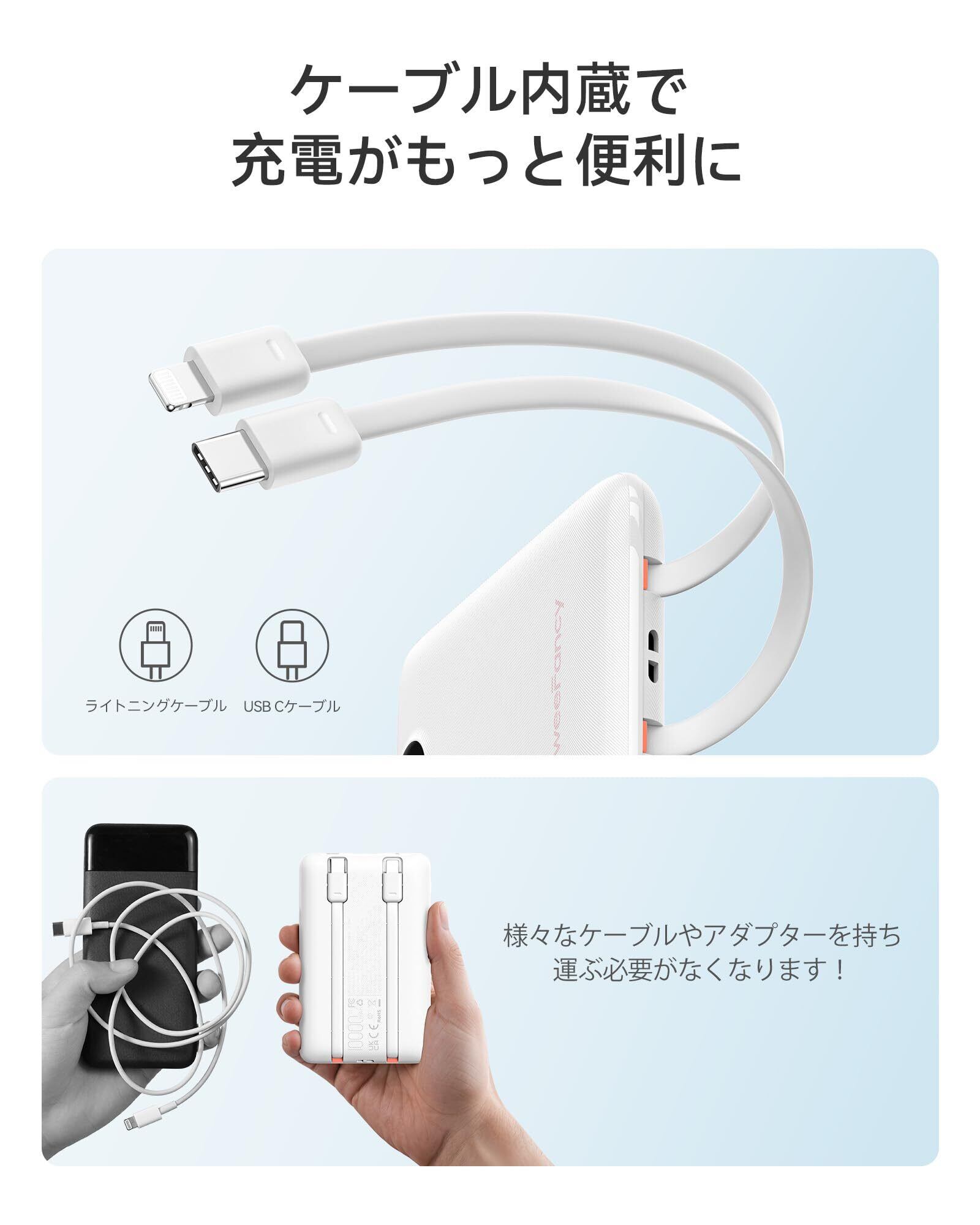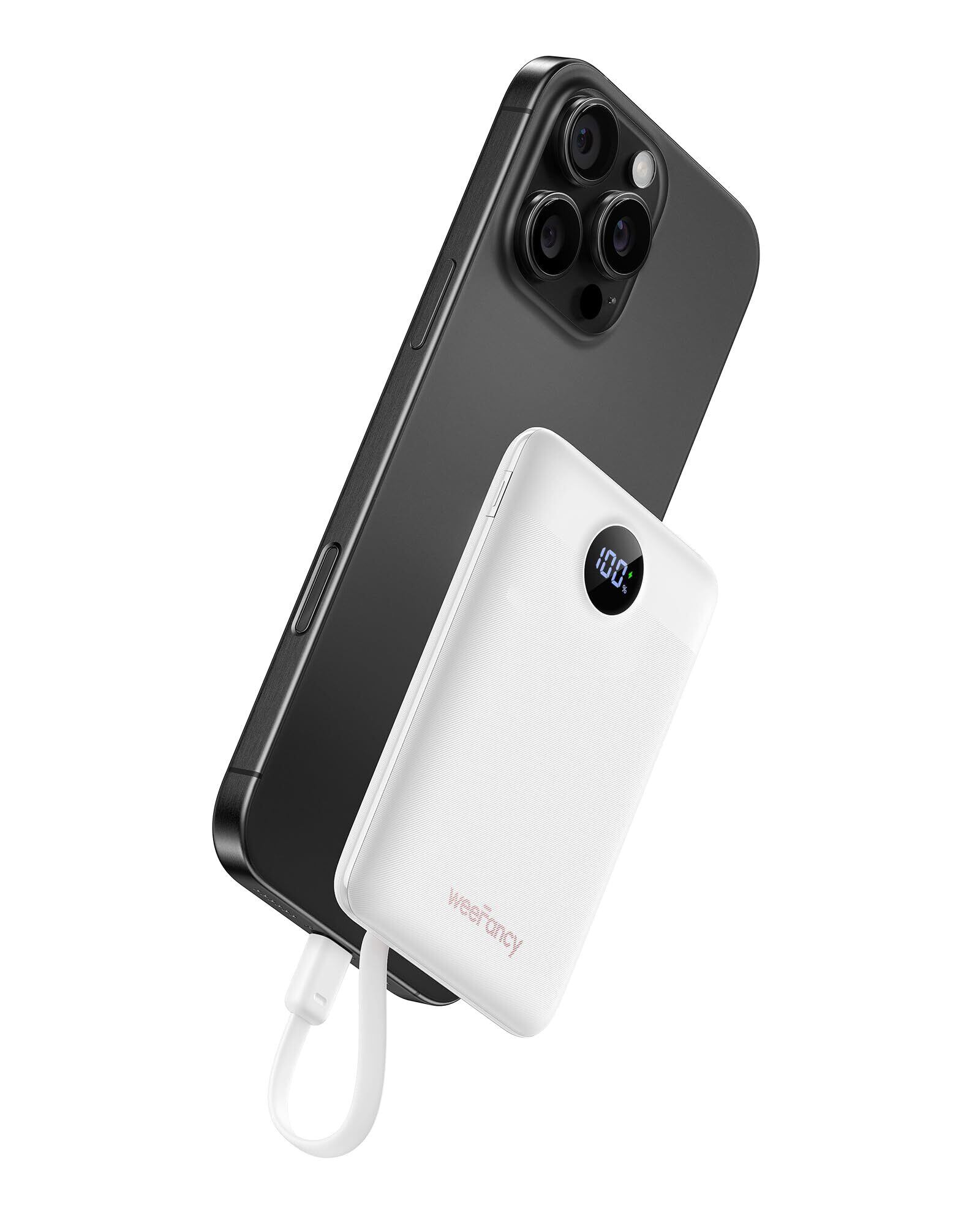 【2025年進級プロ版】WeeFancy モバイルバッテリー 軽量 小型 ケーブル内蔵 タイプc 大容量 薄型 10000mAh 携帯充電器 急速充電 22.5W PD QC USB Type-C出力/入力ポート スマホ 充電器 コンパクト 持ち運び便利 3台同時充電 LED電量残量表示 PSE認証済 アウトドア/災害の必需品 iPhone&Android/電気ベスト/携帯扇風機に対応 ホワイト