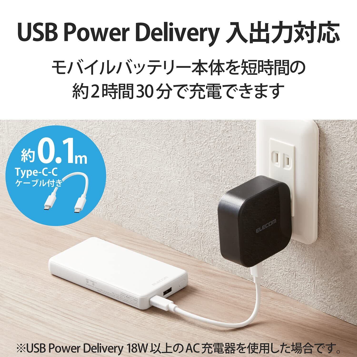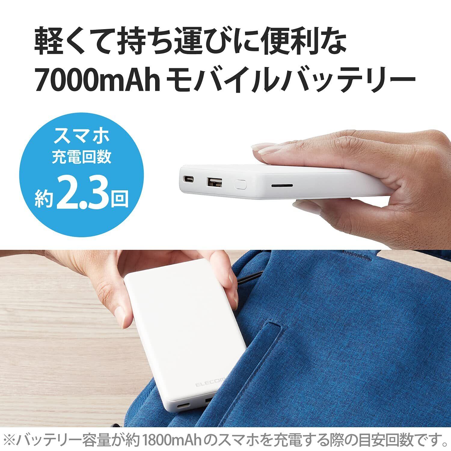 エレコム モバイルバッテリー 7000mAh ( USB PD対応 ) 18W Type-C×1 / USB-A×1 ホワイト DE-C27-7000WH