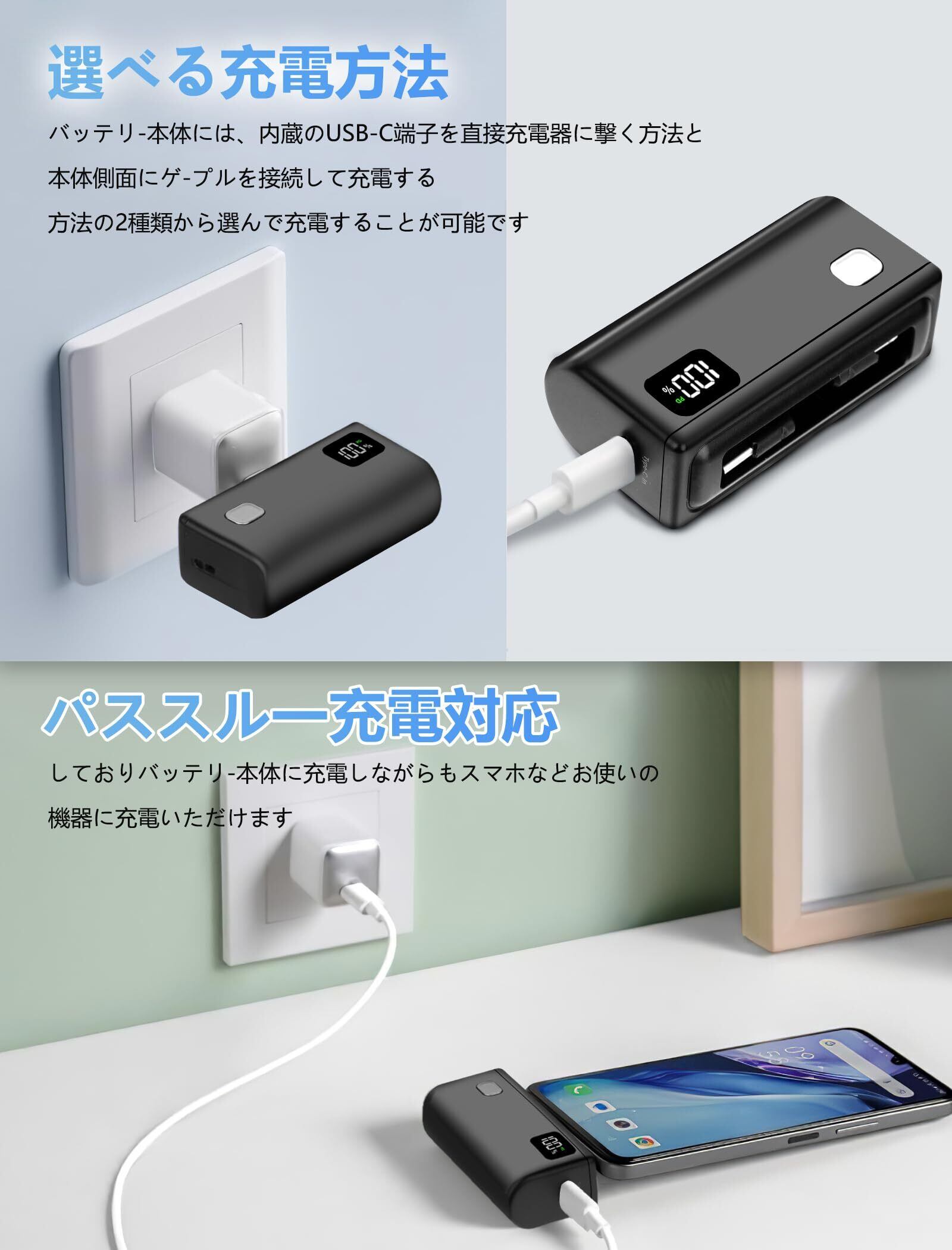 コンパクトかつパワフル:コンパクト設計ながらスマホ約1回分の5000mAhの容量と最大22.5Wの出力を実現。コンパクトさとパワフルさを兼ね備えています。