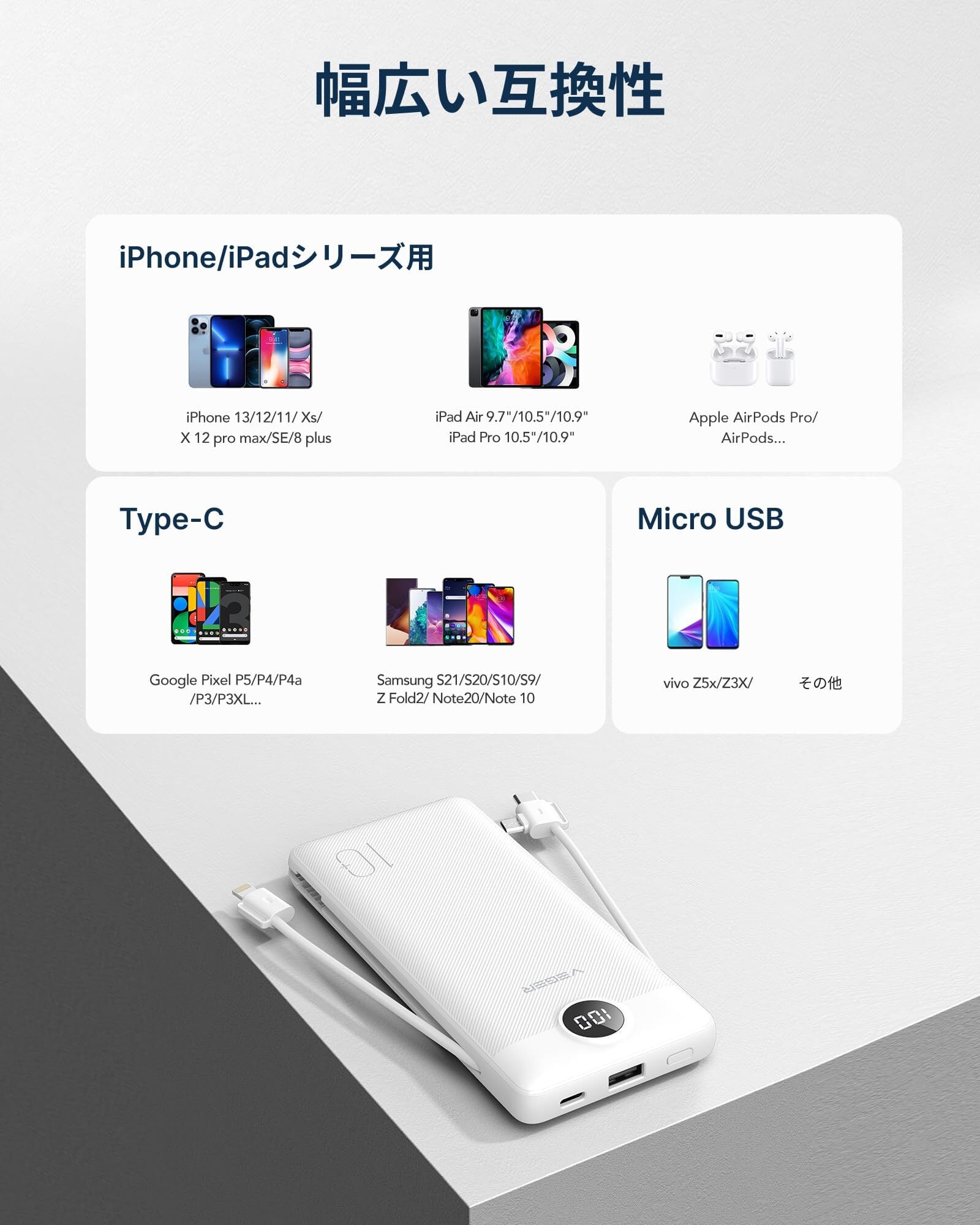 特徴 内蔵ケーブル, 軽量, 大容量, 小型, 内蔵ウォールプラグ