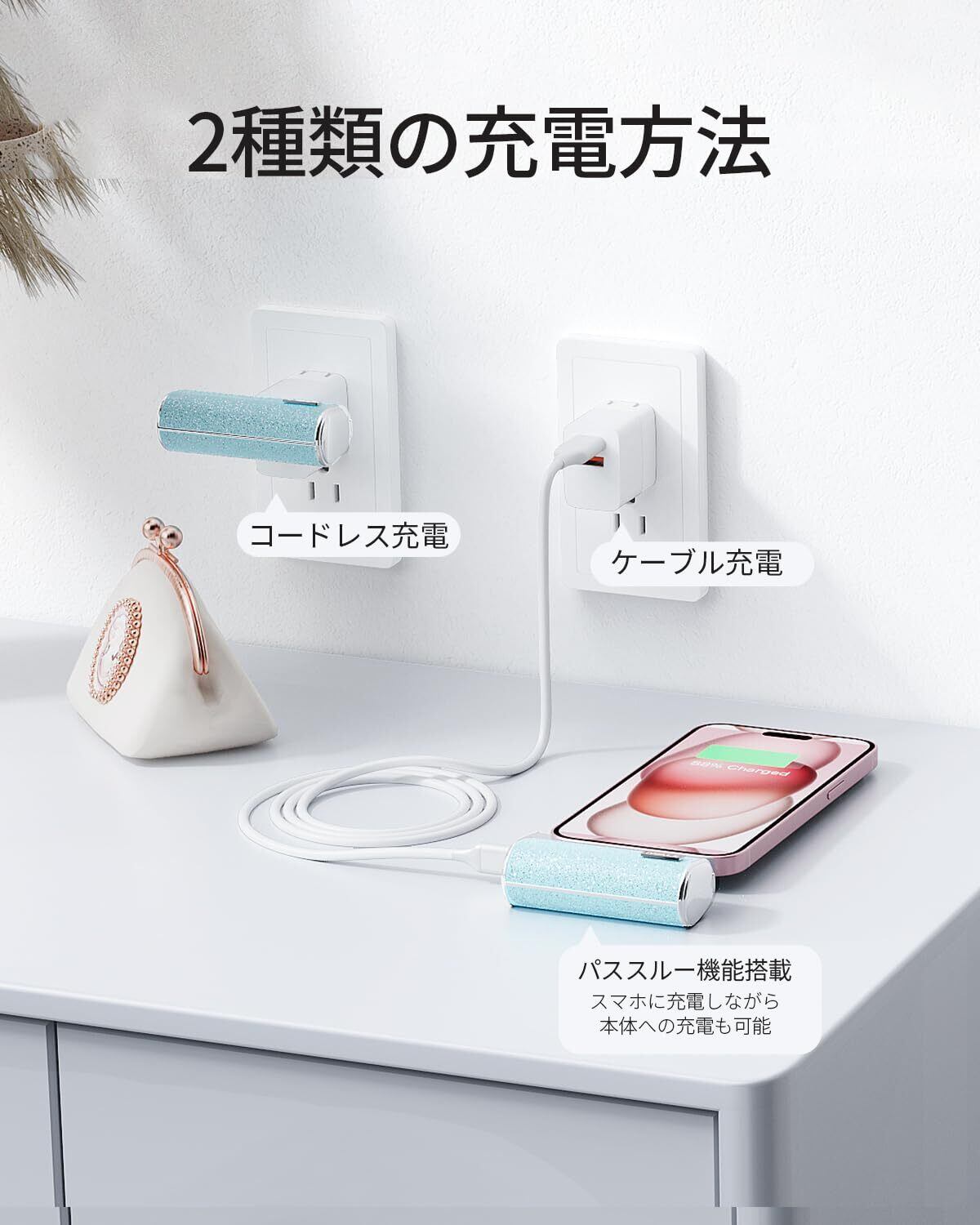 iWALK モバイルバッテリー 超小型 軽量 きらめくかわいいモバイル充電器 USB Type-C 直接充電 コネクター内蔵 コードレス 4500mAh コンパクト おしゃれ iPhone15/16シリーズ iPad AirPods Android対応 ギフト プレゼントとしてもぴったり PSE認証済 ライトブルー