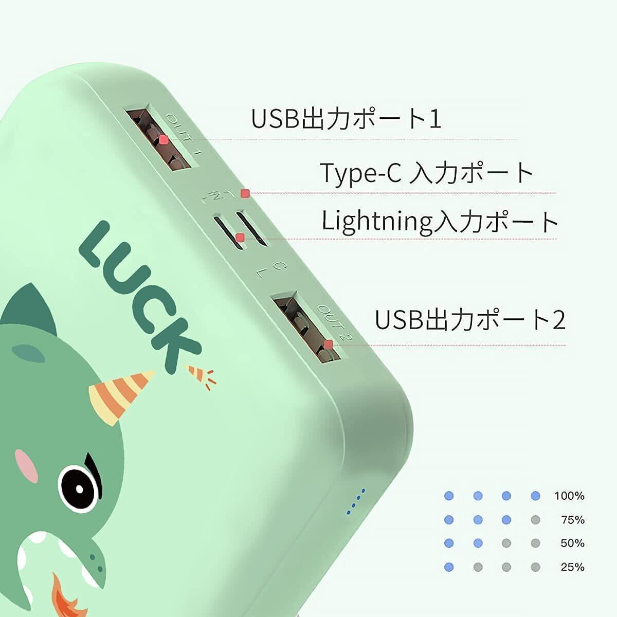 Yoobao モバイルバッテリー かわいい 軽量 ミニ 小型 薄型 コンパクト 10000mAh 大容量 携帯 ポータブル 充電器 iphone スマホ 携帯 バッテリー USBポート Type-C Lightning 急速充電 PSE認証済 携帯充電器 iPad Android 対応 キャラクター ミントグリーン