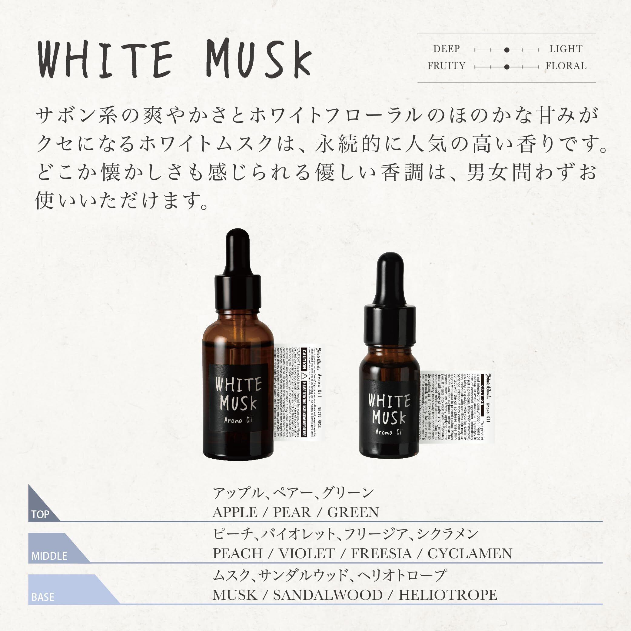 サボン系の爽やかさとホワイトフローラルのほのかな甘みがクセになるホワイトムスク。どこか懐かしさも感じられる優しい香調は、男女問わずお使いいただけます