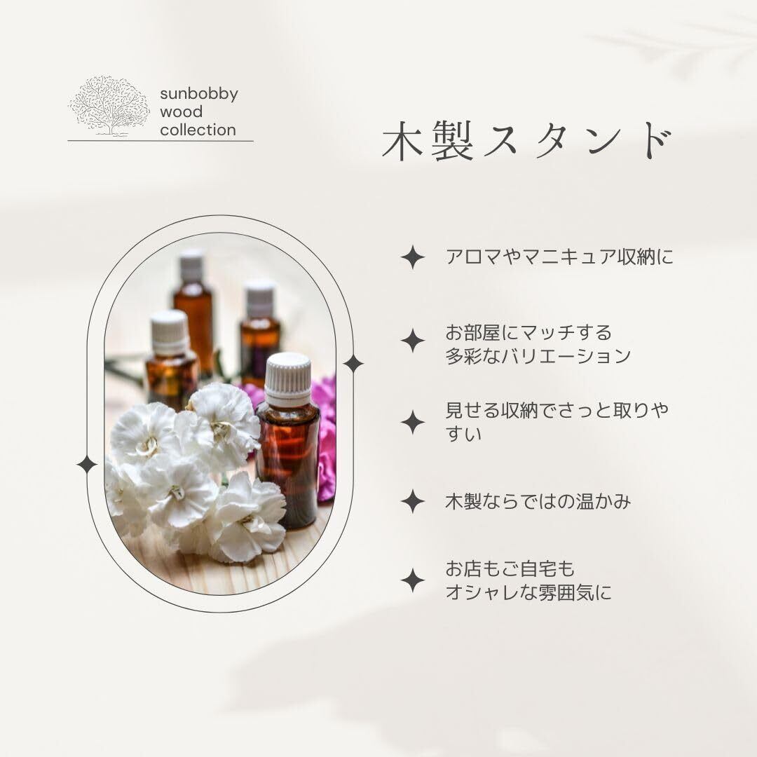 [sunbobby] アロマオイルスタンド 木製 オーガニック 収納ケース エッセンシャルオイル対応 マニキュアボトルもOK 見せる収納 可愛い ディスプレイ (B, 自然木)