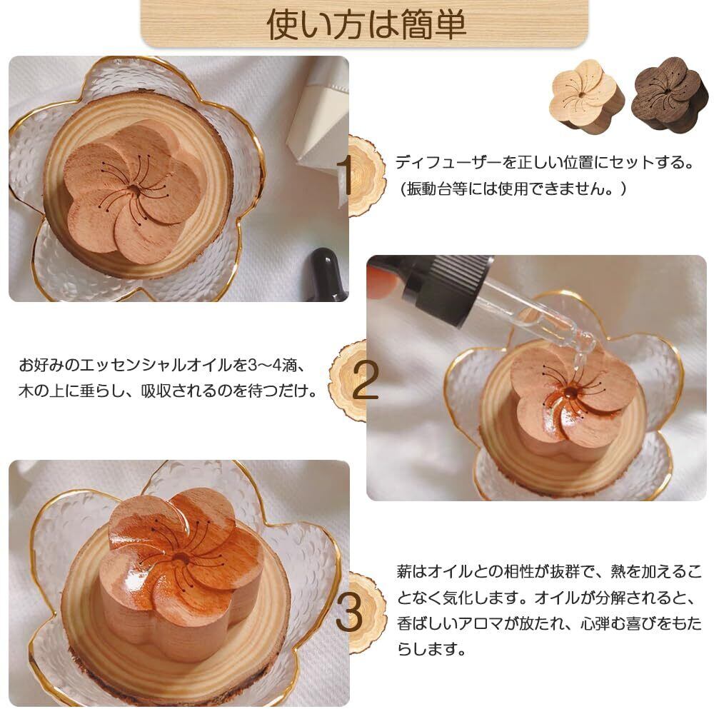 アロマディッシュ アロマディフューザー 2個セット 天然原木 ケヤキ 黒胡桃 専用アロマディフューザー アロマディフューザー木目 アロマストーン ポータブル 車載 安眠 瞑想 芳香剤 アロマオイル 寝室/美容室/化粧室/家庭用 置き型消臭 (梅の花の形) | kki