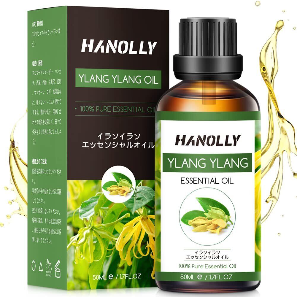 Hanolly エッセンシャルオイル イランイラン アロマオイル 天然成分100% 精油 50ml 快眠 マッサージ ディフューザー 空気加湿器用