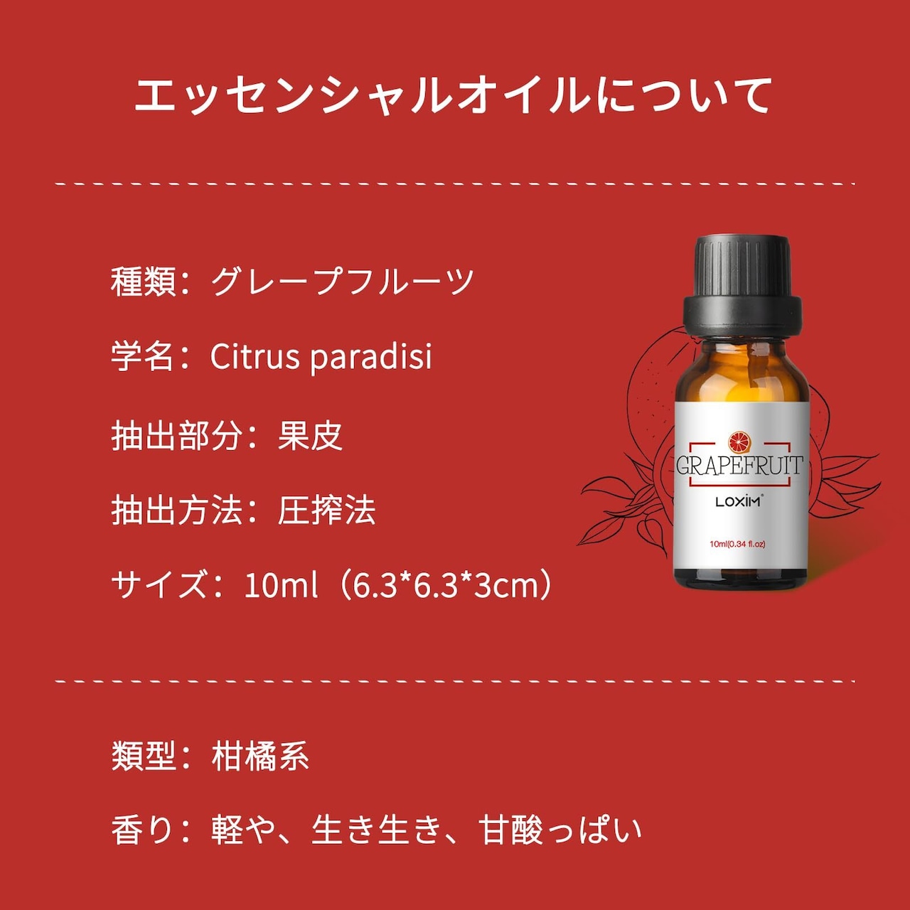 LOXIM グレープフルーツ アロマオイル 10ml 柑橘系 グレープフルーツ 精油 エッセンシャルオイル アロマ 天然100% グッズ 加湿器/アロマディフューザー/アロマストーン/アロマポット/アロマスプレー用 プレゼント ギフト Grapefruit oil