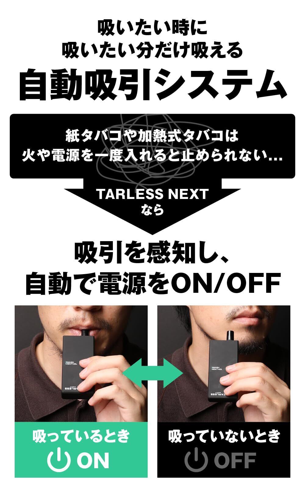 ※こちらはカートリッジ(電池、バッテリーを使用しておりません)となります。ご利用には、TARLESSNEXT(ターレスネクスト)の本体が必要です。初めての方は、スターターキットをご購入ください。