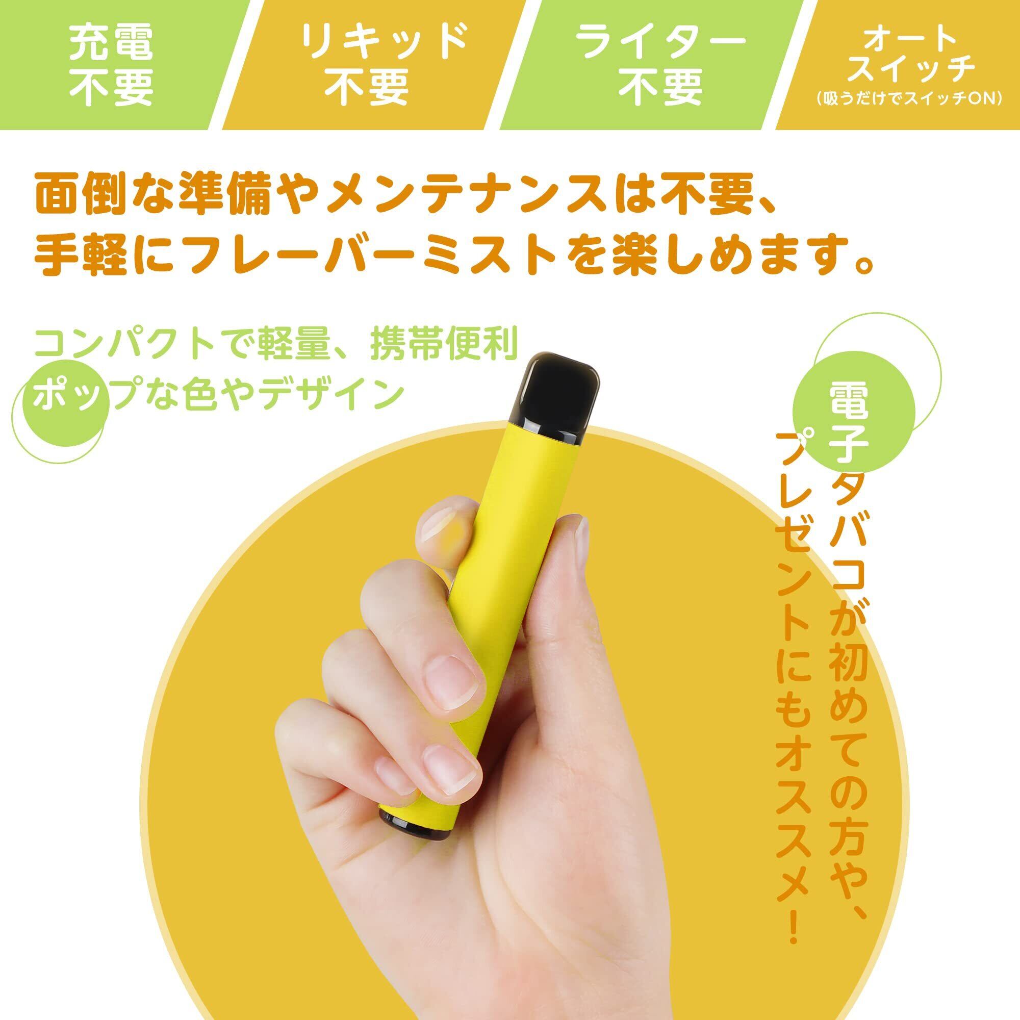 【面倒な準備やメンテナンスなし】充電不要・リキッド填充不要・オートスイッチなので吸うだけでスイッチON。ポップな色やデザイン、コンパクトで携帯便利。