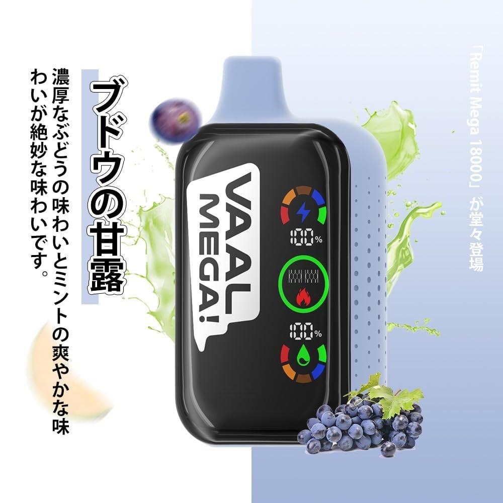 「2個入り」電子タバコ 使い捨て REMIT MEGA 18000回吸引可能 大容量 持ち運び ベイプ vape シーシャ 本体 650mAhバッテリー ベイプエンジン Type-C充電 人気 水蒸気タバコ 爆煙 禁煙パイポ ペン型 セット ニコチンなし タール無し (グレープハニーデュー(フレーバー1), スイカアイス(フレーバー2))