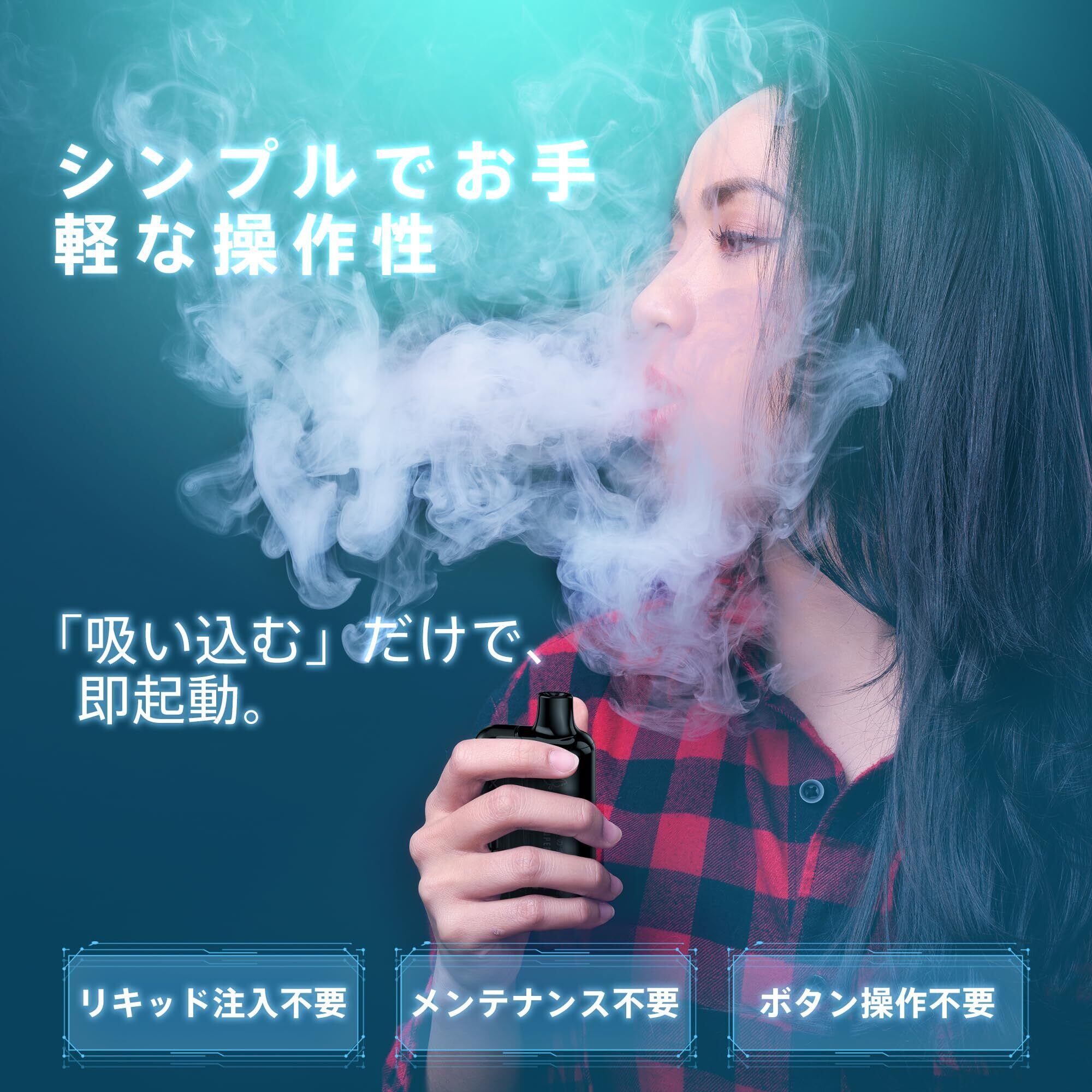 <シンプルな操作性>リキッド充填済の使い捨て式、本体に差し込むだけ!リキッド注入・メンテナンス・煩わしい操作が一切なし。初心者でもストレスなくカンタンに使用できます。
