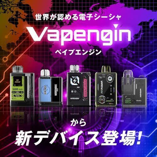 【繰り返し使えるリキッド注入式】全世界販売数2300万台のVapengin(ベイプエンジン)から、遂にカートリッジ式の持ち運びシーシャ、リキッド注入タイプが登場。お好みのリキッドや、ベイプエンジンリキッドを入れて、濃厚に、そして、コスパ良くベイプをお楽しみいただけます。
