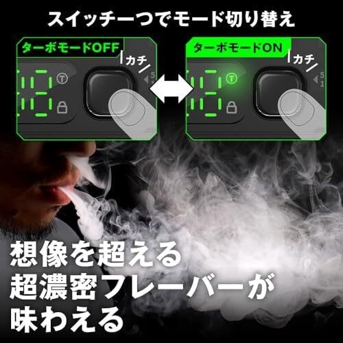 【より濃厚に味わえるターボモード搭載】スイッチ一つで、従来のベイプエンジンよりも煙量が倍近く増加。味わいもその分、濃厚になり、爆煙が、より吸い心地を感じさせてくれます。