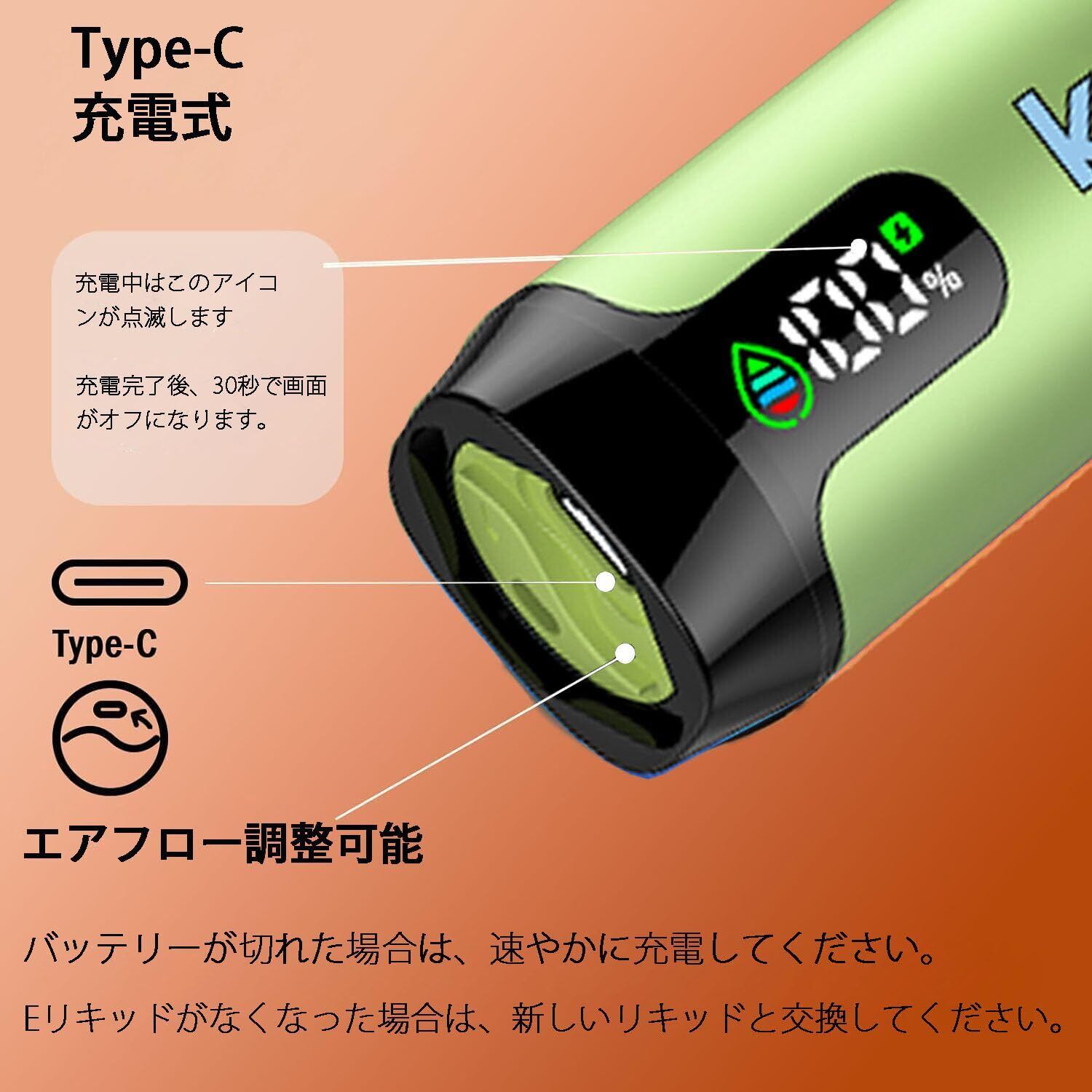 リアルタイム モニタリング: この水蒸気タバコは、バッテリーと電子液体の両方のレベルを表示する画面があり、使用中にバッテリーの状態と電子液体の消費量をはっきりと確認できます。さらに、このデバイスは Type-C 充電ポートを備えており、素早く簡単に充電できます。(充電ケーブルは付属していません)