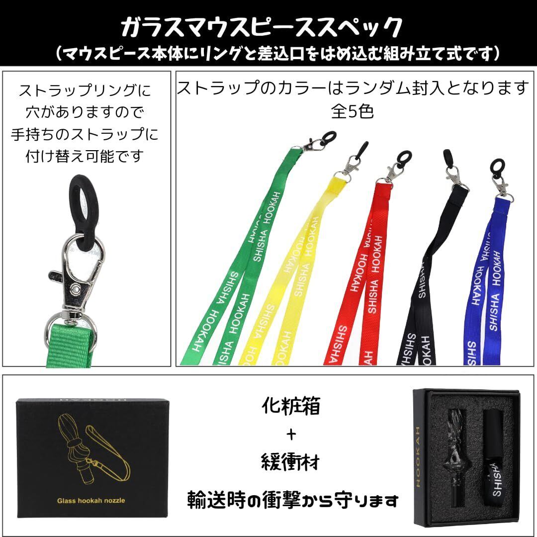 NIPPON HOOKAH新型ガラスマウスピース入荷しましたマウスピース本体x1、ストラップリングx1、ストラップx1、ホースキャップx1のセットが箱に入っております