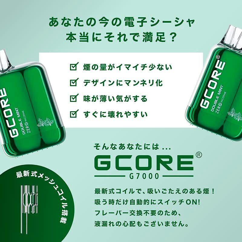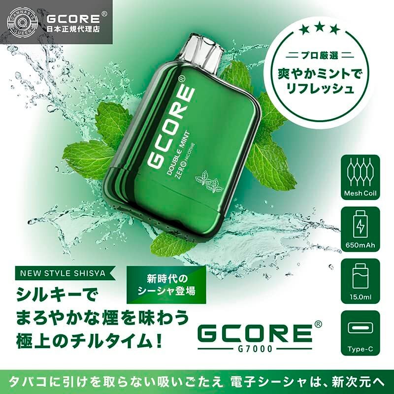GCORE G7000 DOUBLE MINT 電子たばこ べイプ ニコチンフリー・タールフリー 大容量約7000回吸引 シーシャ ミント フレーバー