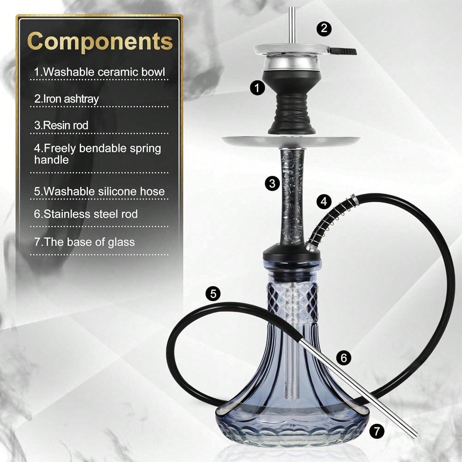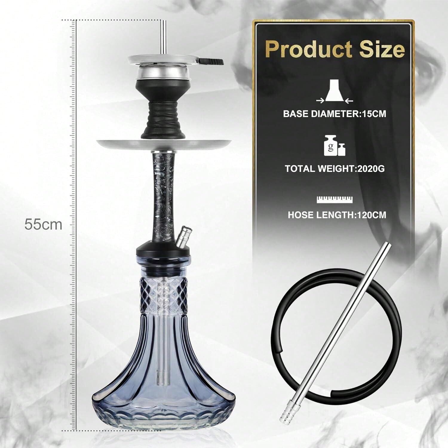 素材も煙も、一切の妥協なし。 本商品は、細部にまでこだわり抜いた55cmのプレミアムシーシャ(水タバコ)本体セットです。ボウルからホース、接続パーツに至るまで高品質な素材を採用。洗練されたレジンパターンのロッド、手仕上げのガラスベース、ステンレス製の吸引パイプなど、全体から高級感が漂います。 分解・水洗い可能な構造により、メンテナンス性も抜群。初心者からシーシャ上級者まで、すべてのユーザーに安心してご使用いただけます。 機能だけでなくデザイン面でも魅力的で、ダイニングやラウンジ、カフェの空間演出にも最適。フルセット付属で、到着後すぐに上質なスモーキング体験が可能です。