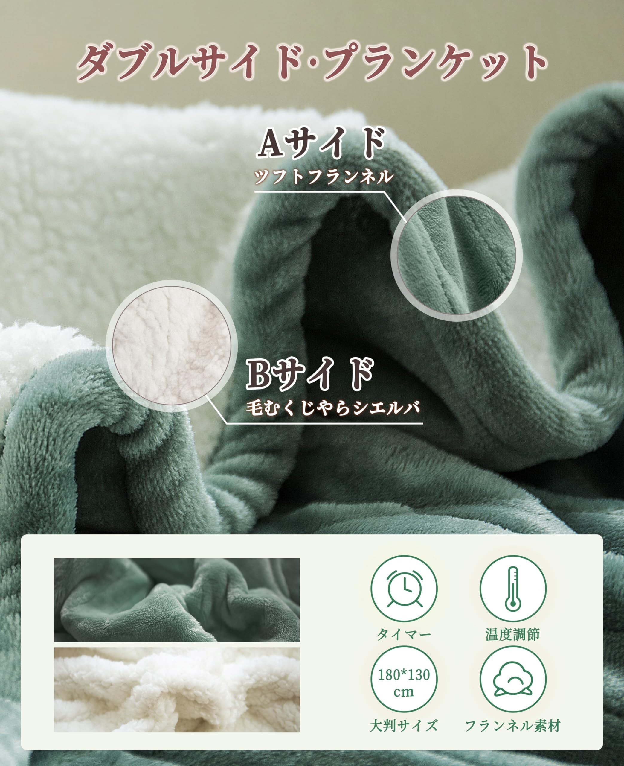 GOTCOZY 電気毛布 掛け敷き兼用 - 180×130cm フランネル電気ブランケット 6段階温度調整 10時間自動停止タイマー付 速暖 節電 丸洗い可能 暖房器具 防寒対策(グリーン) | kki