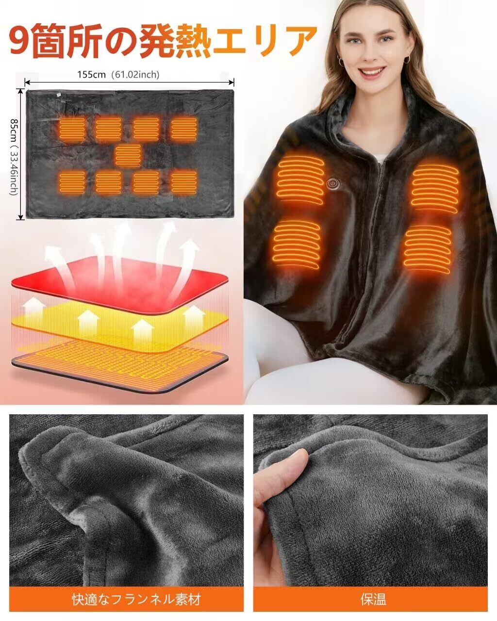 【多機能電気毛布&USB給電式&喜ばせる冬のプレゼント】 電気毛布掛けのサイズを拡大し、上半身だけでなく、さらに足、膝、もも、腰、お腹、肩など全身でも用いられ、やさしい温もりで寒い冬もあったか快適!肩掛けやひざ掛けや巻きスカートなどとして使えて、電気毛布で冬の寒さがなくなります。それに、コンパクトで収納便利、折り畳んでからカバンに入れれば、手軽に持ち運びできます。USB接続できるタイプは、パソコンやモバイルバッテリーと接続できるので、どんな場所でも適合する充電器があれば充電できます。寒い冬に、あなたの家族、友人、恋人にこのようなプレゼントを贈って、暖かい冬を過ごさせましょう。