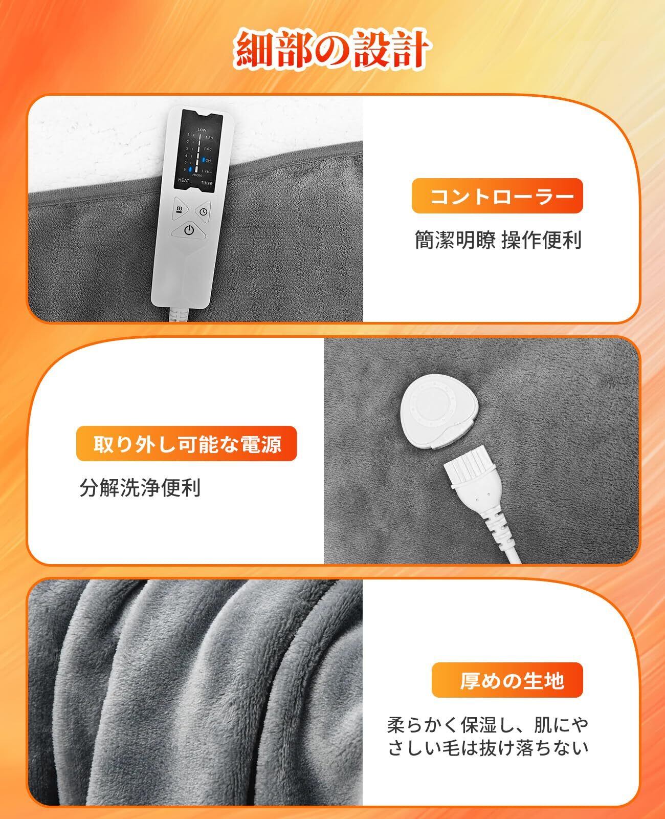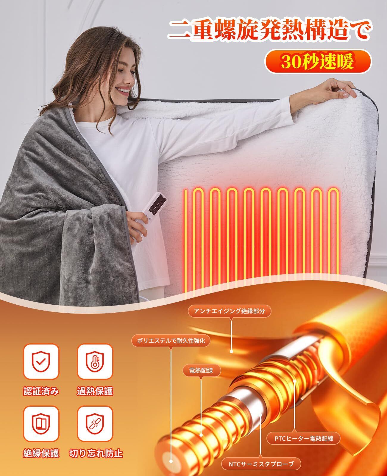 電気毛布 掛け敷き兼用 180*133cm 大判サイズ 6段階温度調整 4段階タイマー ふわふわ 電気ひざ掛け フランネルとコットンウール 厚手生地 電気ブランケット ふかふか ソファ ブランケット 速暖 恒温加熱 過熱保護 切り忘れ防止 省エネ 柔らか 丸洗い可 ダニ退治 抗菌防臭 防寒対策 暖房器具 肩掛け 膝掛け 毛布 PSE認証済み(グレー)