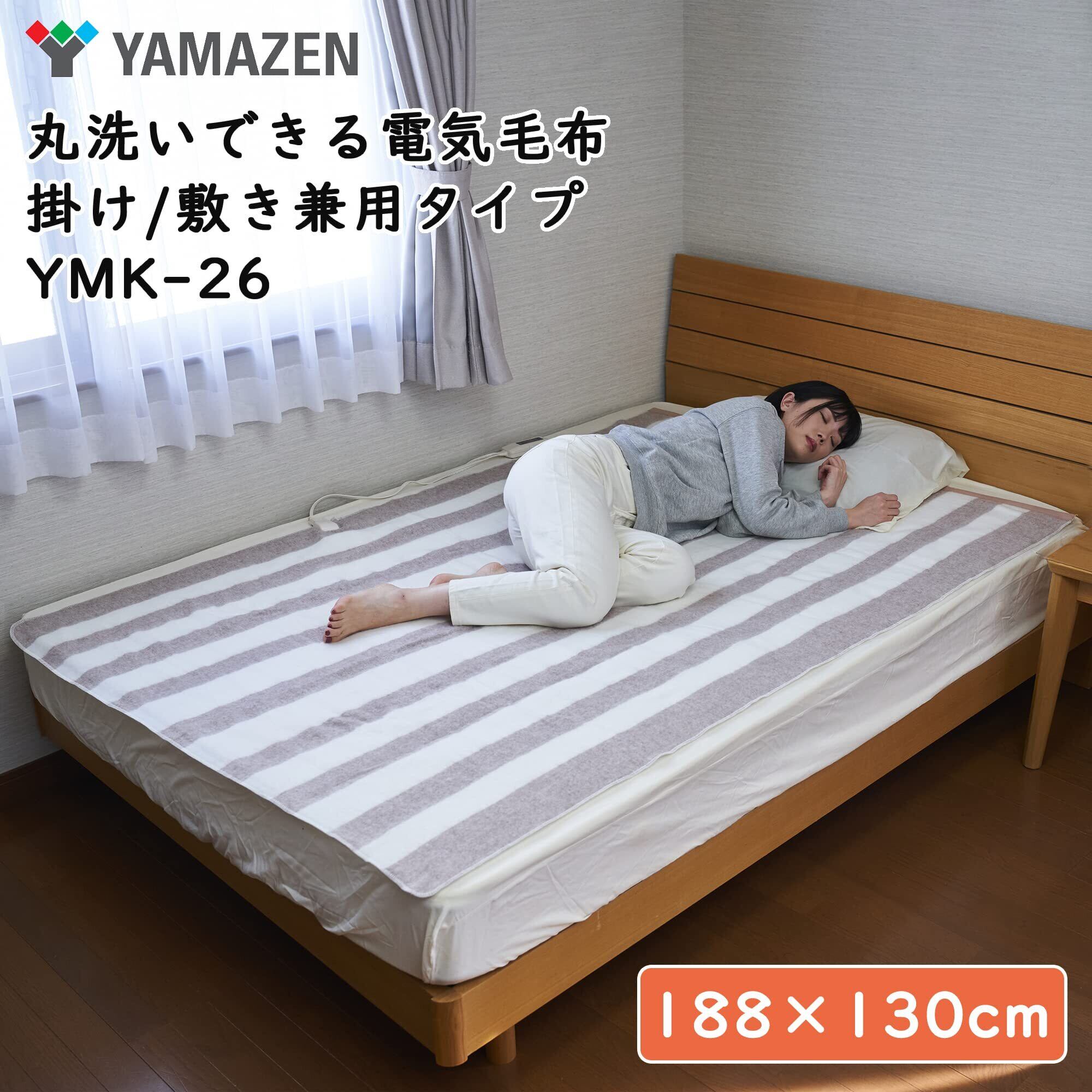 [山善] 電気毛布 掛け 敷き 兼用 長方形 (188×130cm) (ダニ対策機能) (温度調節機能) (丸洗い可能) ホワイト×ベージュ YMK-26