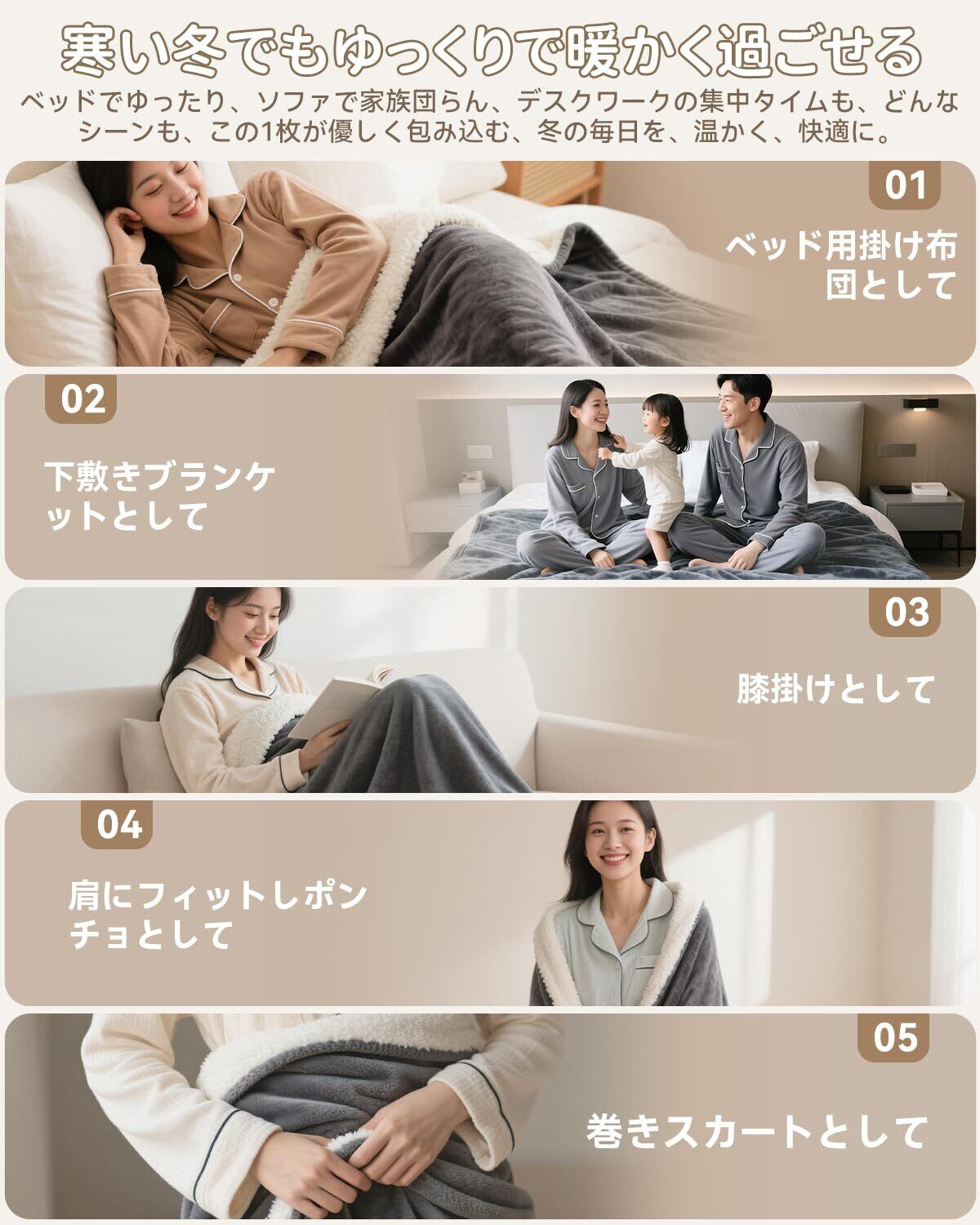 【高級両面使用可能仕様で極上の温もり電気毛布が登場】極上ふわふわ両面使える電気ひざ掛けは表面が吸湿発熱に優れた高級フランネル、裏面は保温性抜群のふわふわ素材を採用され、まるで高級ブランケットのような肌触りで、寒い日も「あ~気持ちいい」とつぶやきたくなる極上温かさ!従来品より30%アップの保温性!ふかふか素材が体温を逃さず、電気をつけていない時でも「これだけで十分暖かい」と驚きの声続出し、電気代節約にも嬉しい設計です。冬はもちろん、夏のオフィスや寝室の冷房対策としても大人気。「1年中使えるからお得」一年中使えるアイテムです。その上、ヒーター部分は炭素繊維加熱線を採用、優れた導電性や導熱性を実現し、電源オンにすると、すぐじんわりと暖かくなります。布団に入った瞬間、温かさが身体を包み込み、あなたの寒さをジャストフィットします!それに床に座り、本体をひざや腰にかけたり、ソファーに敷いてし使用たりするなどいろんな場合で大活躍!冬で手足が冷えて寝つきが悪くなったり、寒い夜間で起きてしまったり、苦労している方に本店のあったかぽかぽかの電気毛布をおオススメ。140×80cm