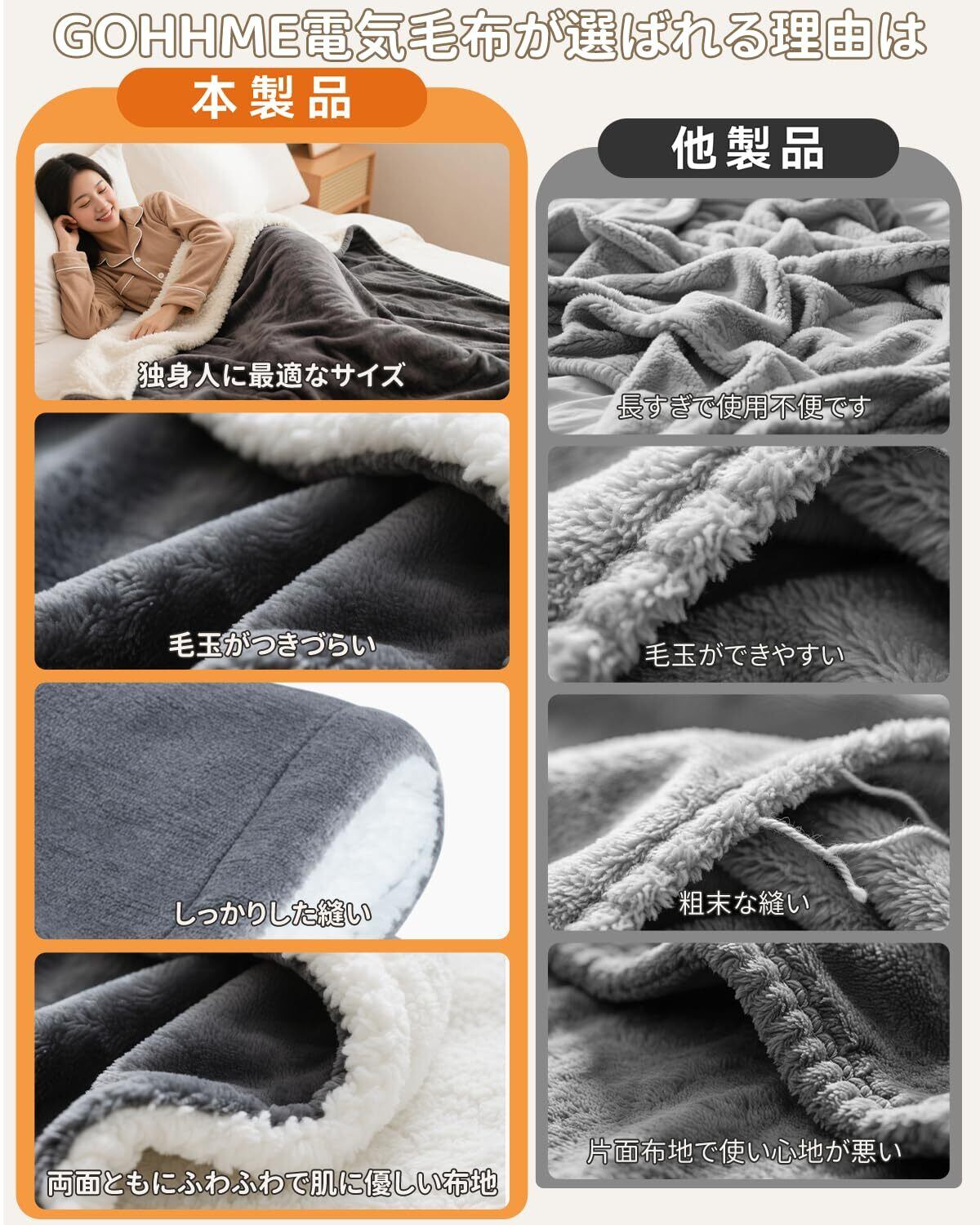 GOHHME 電気毛布 掛け敷き兼用 電気ひざ掛け 140×80cm 電気ブランケット 【両面使用可能フランネル&厚手生地】6段階温度調節 5段階タイマー機能 こたつ布団 毛玉なし 敷きかけ兼用 ふわふわ 肩掛け 膝掛け 過熱保護 防寒対策 抗菌 防臭 ダニ退治 冷え予防 暖房器具 冬用 冷房対策 PSE認証済 | kki