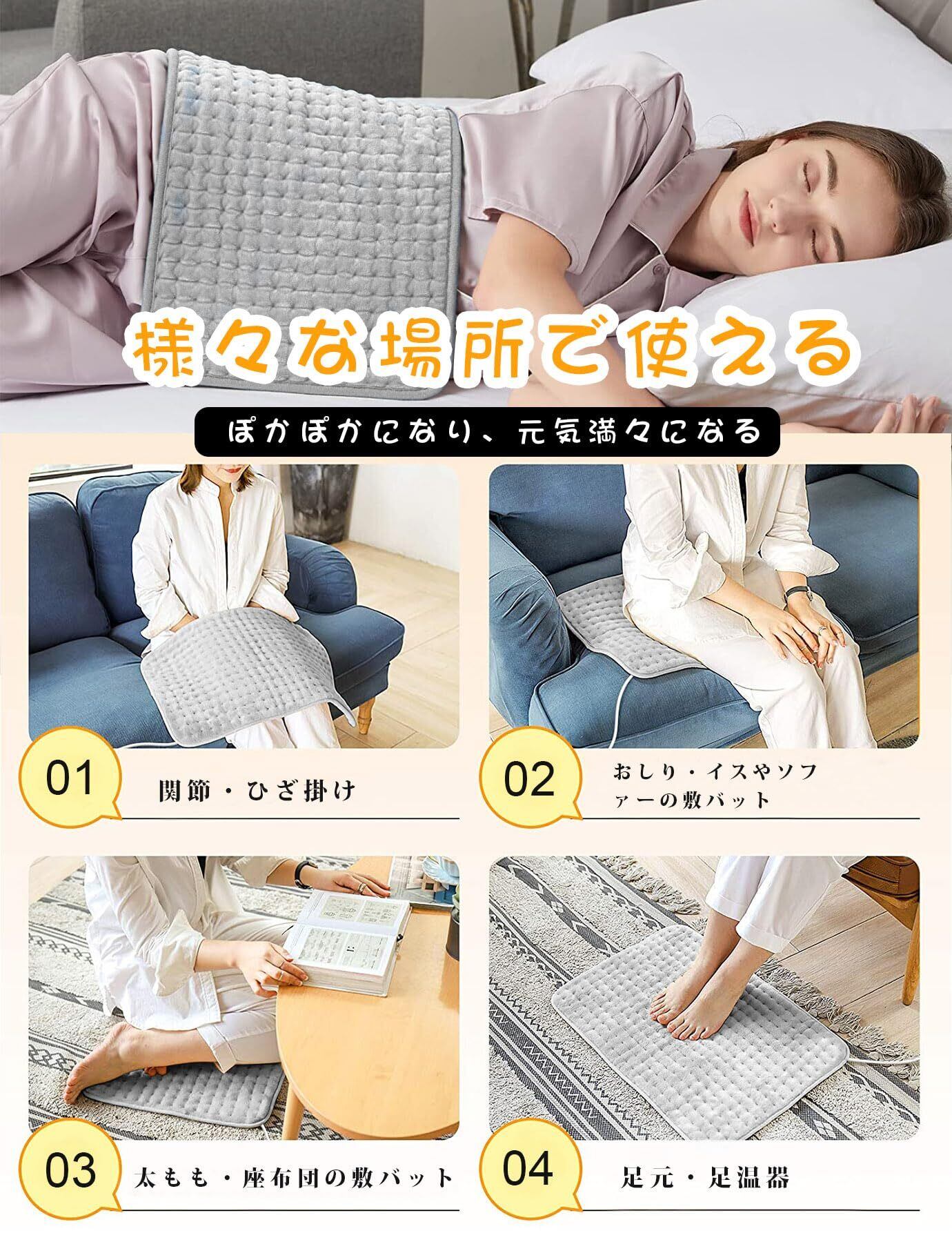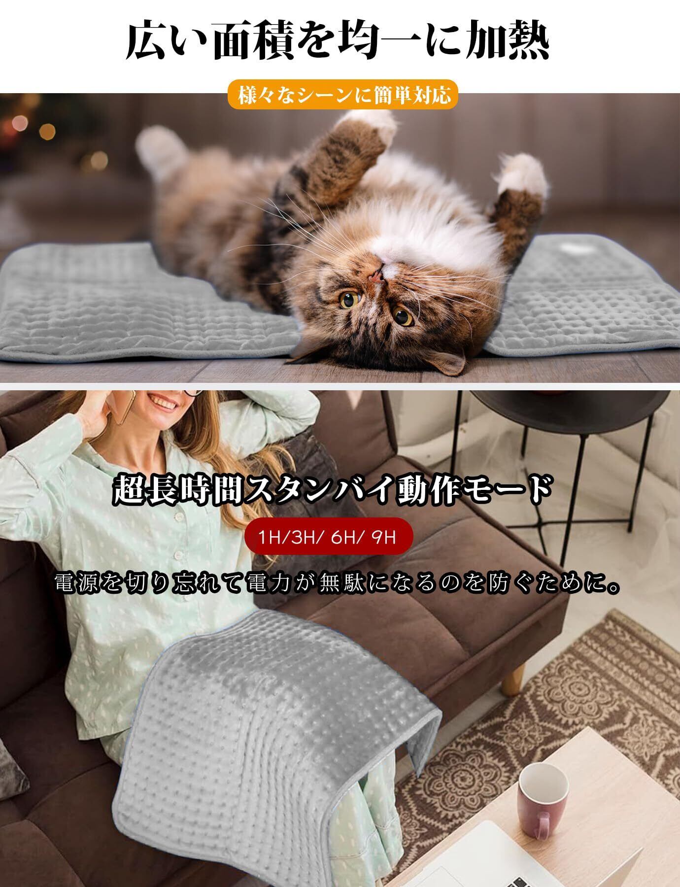 【 限定】電気ホットマット ミニ 一人用 ホットカーペット タイマー機能付き 過熱防止 電気毛布 敷きマット 在宅勤務 テレワーク ごろ寝 防寒対策 グレー 40*76cm